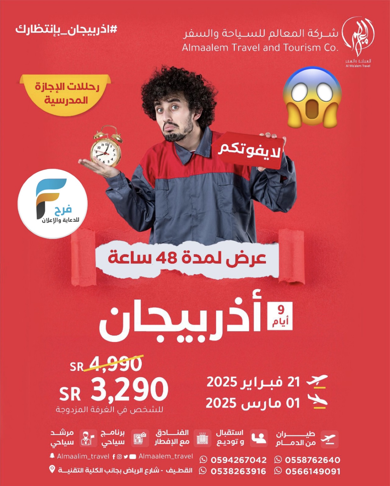 1700 ريال خصم رحلات شركة المعالم للسياحة والسفر الإجازة / اذربيجان