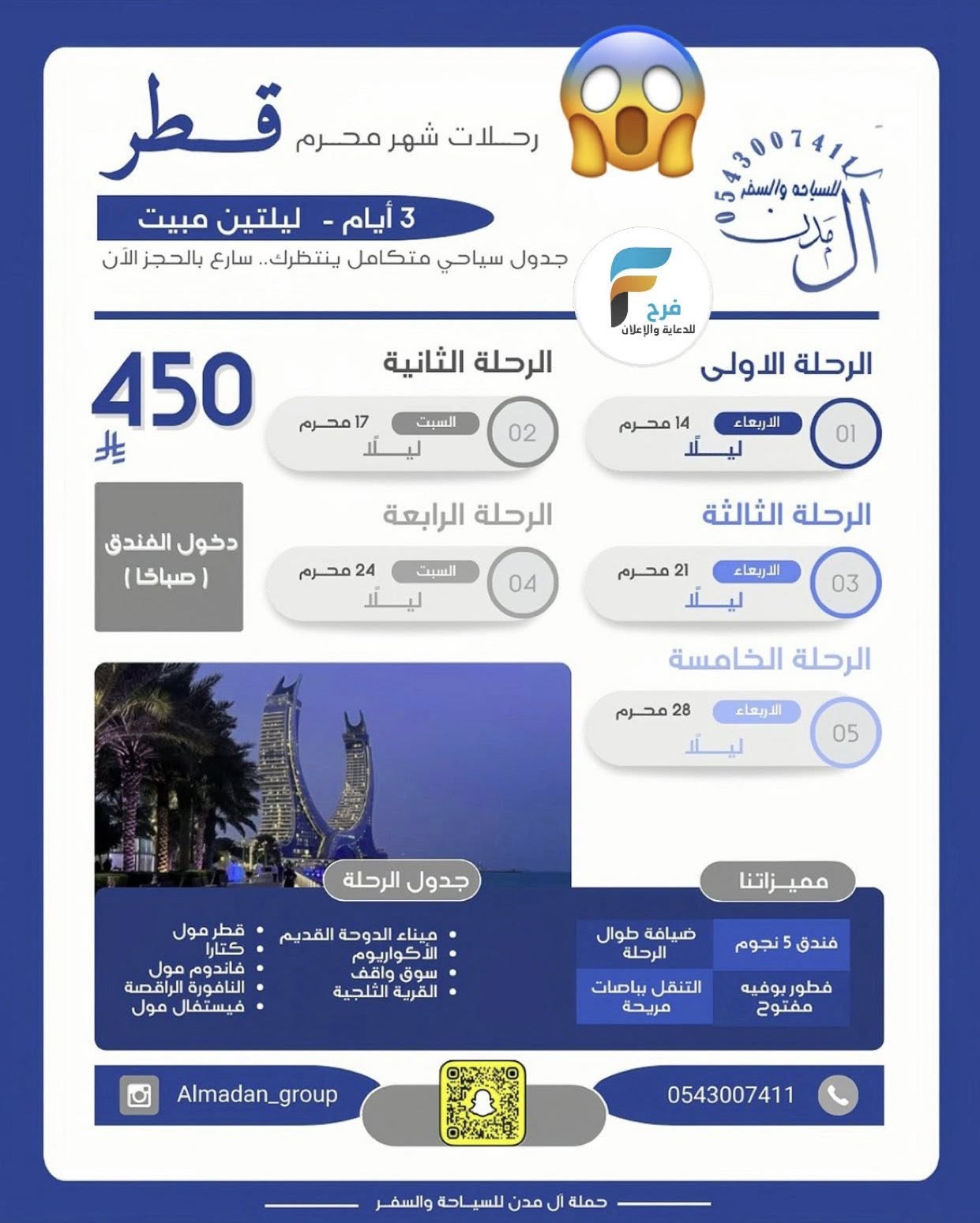 الرئيسية دول الخليج 450 ريال تبدأ رحلات حملة آل مدن / دبي – قطر –...