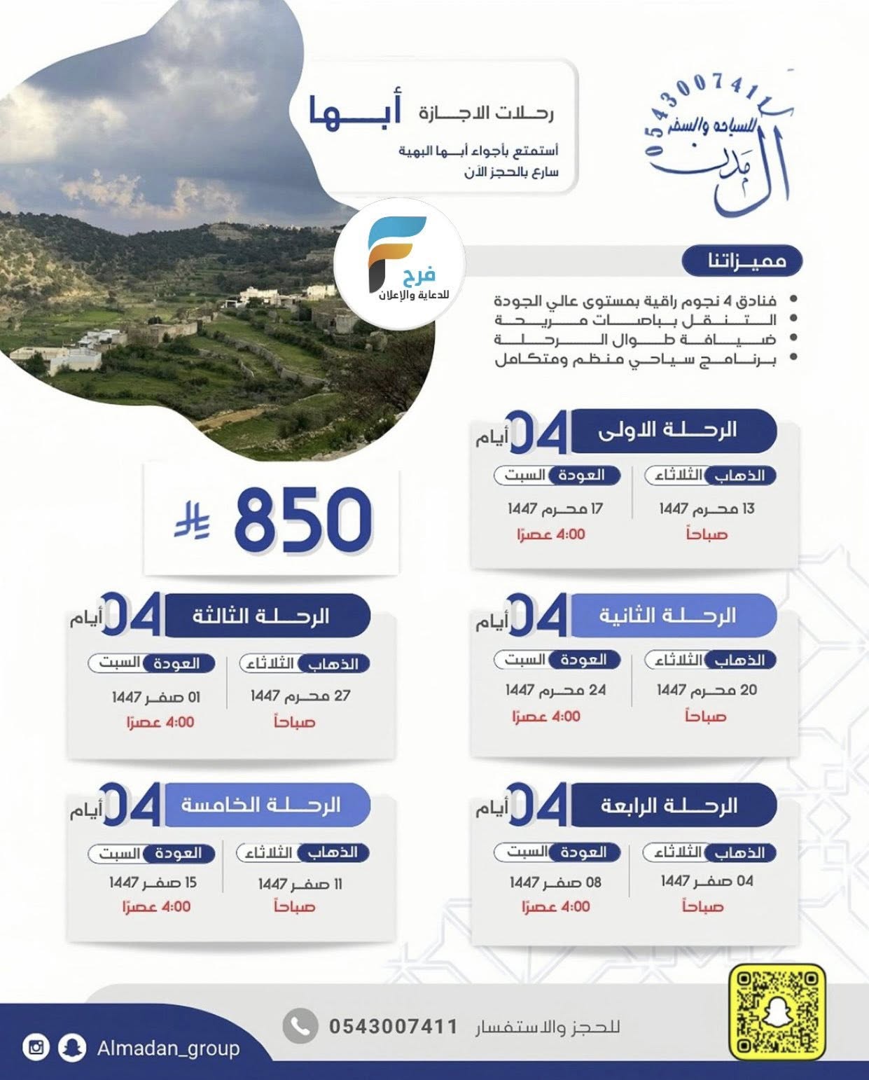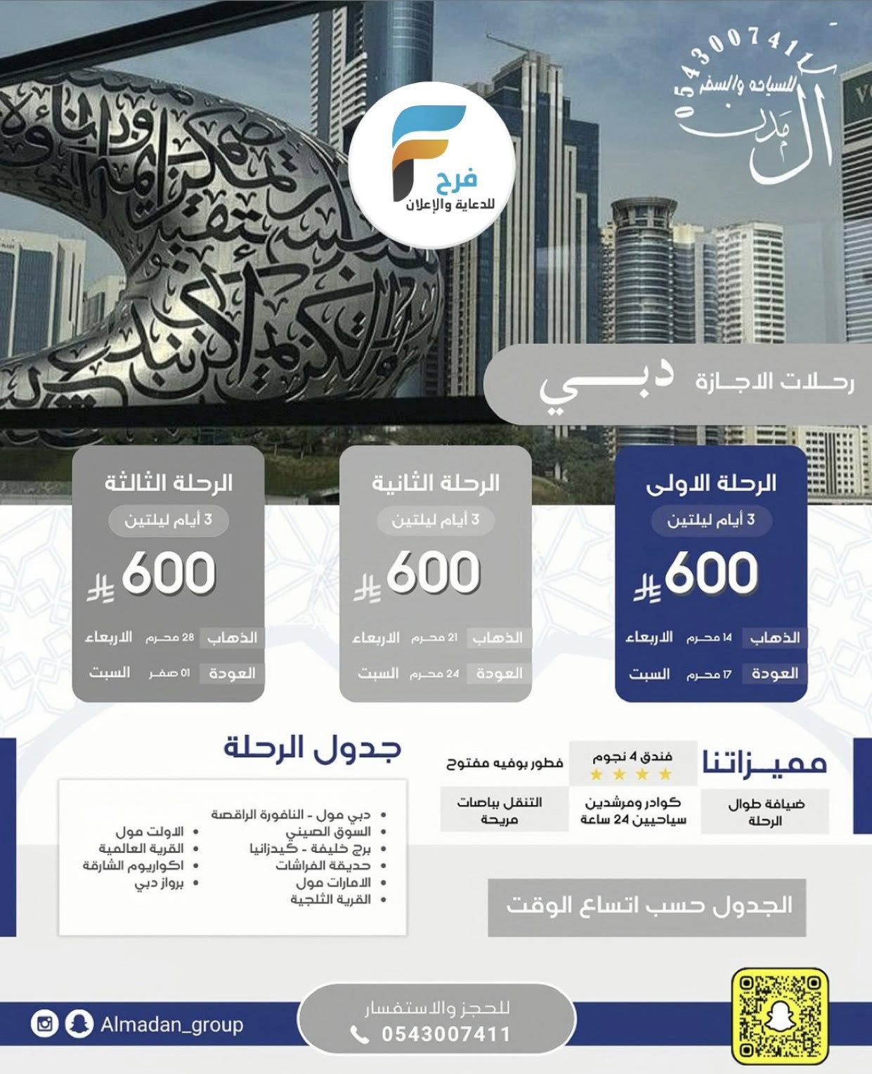 450 ريال تبدأ رحلات حملة آل مدن / دبي – قطر – الكويت – البحرين – ابها