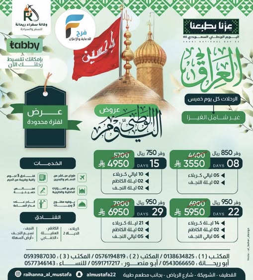 خصومات رحلات وكالة سفراء ريحانة اليوم الوطني / العراق