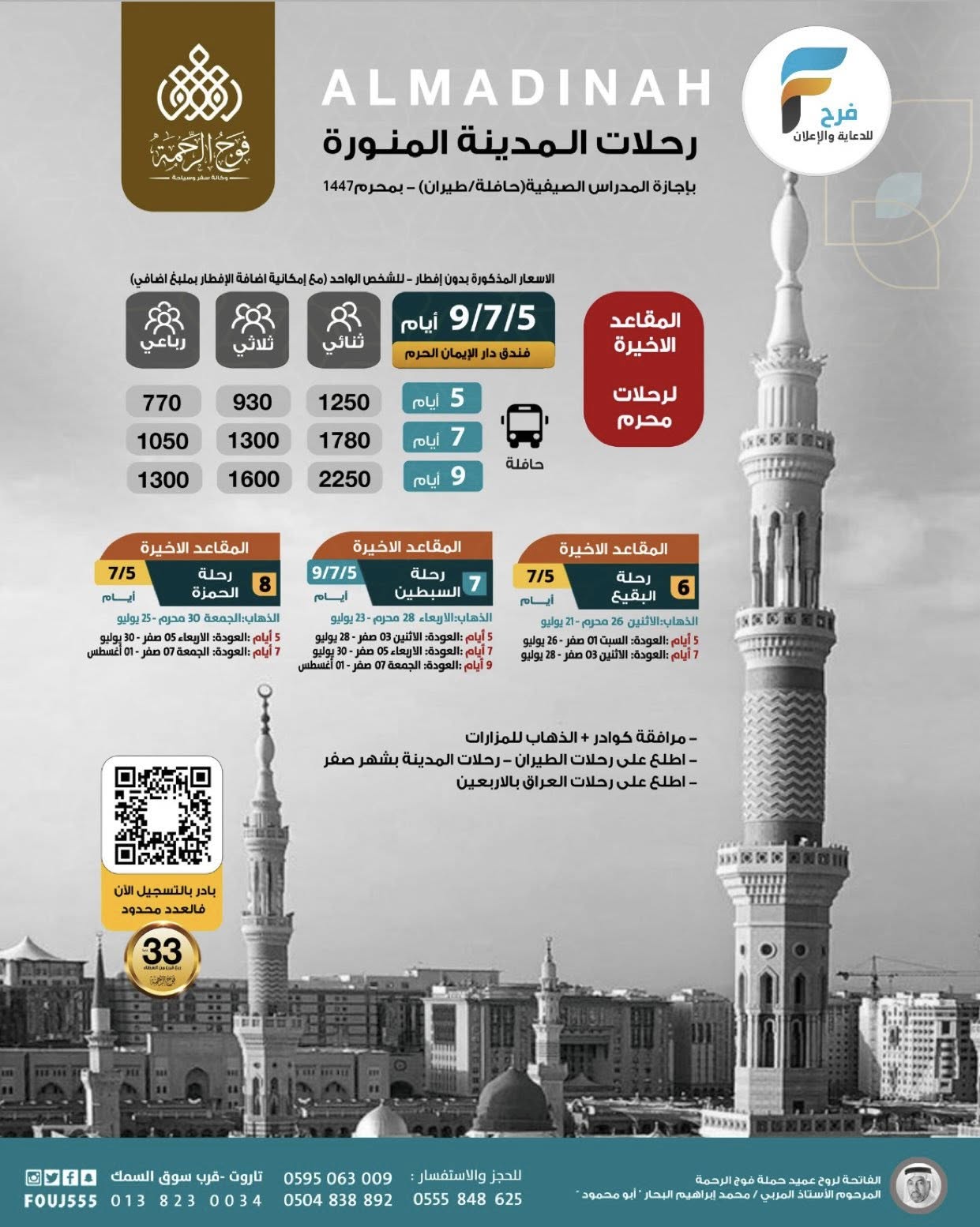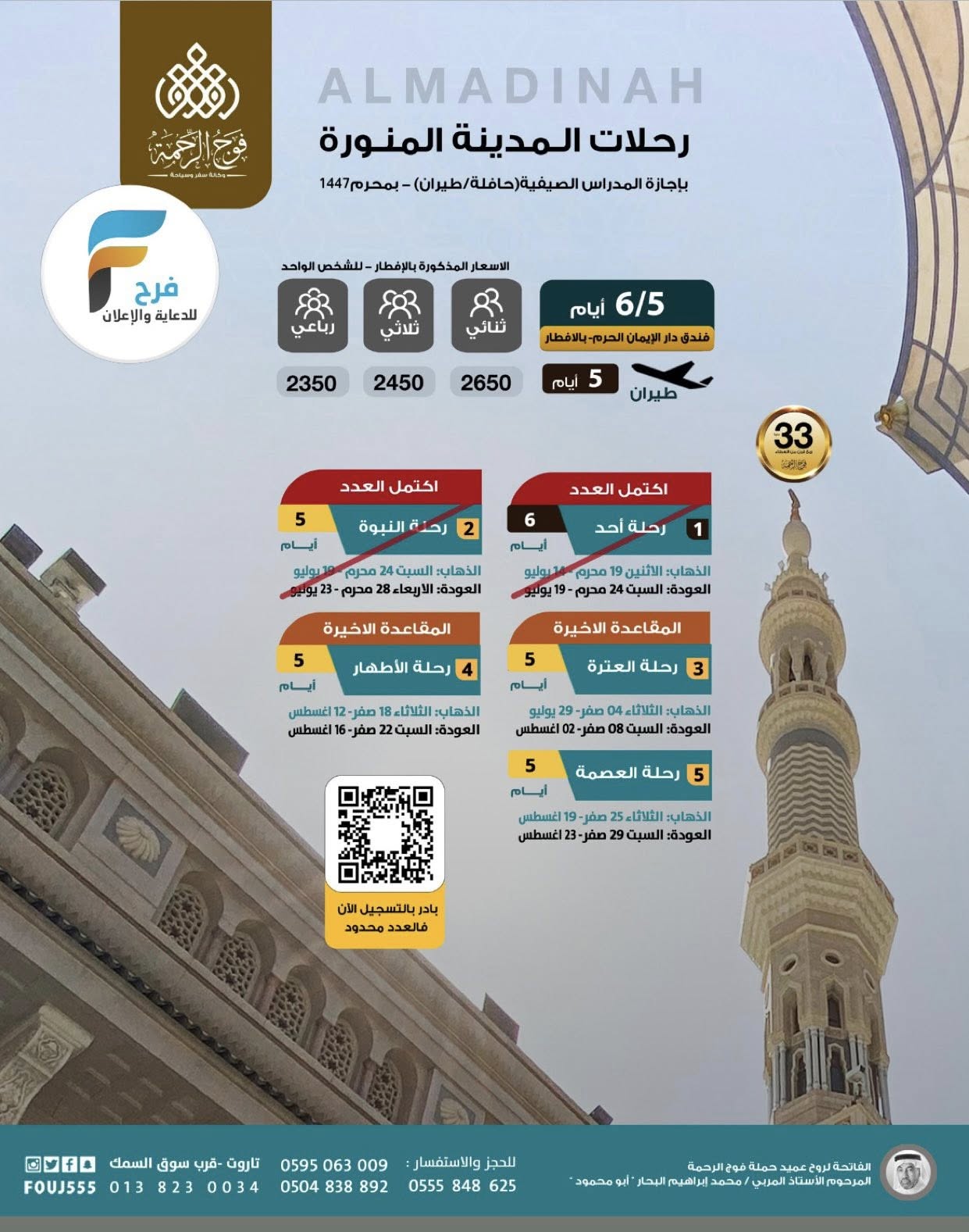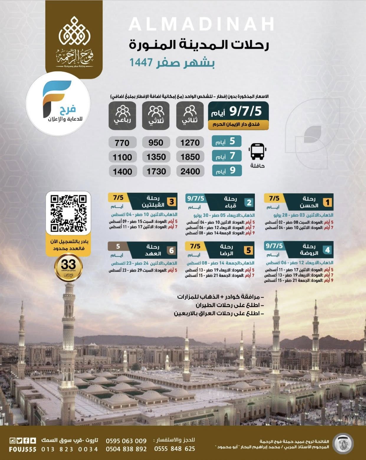 رحلاتنا مستمرة اسبوعياً إلى المدينة المنورة