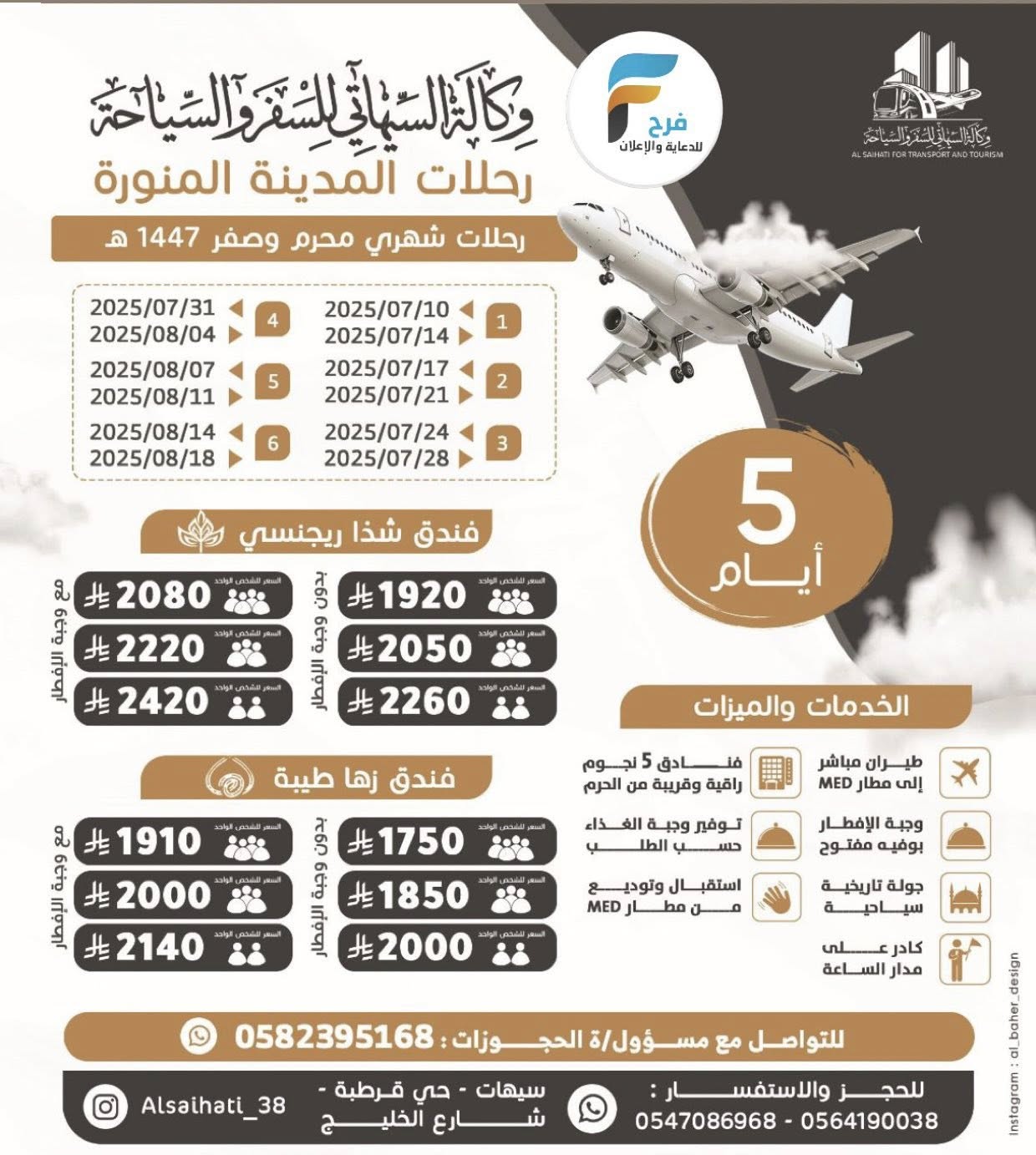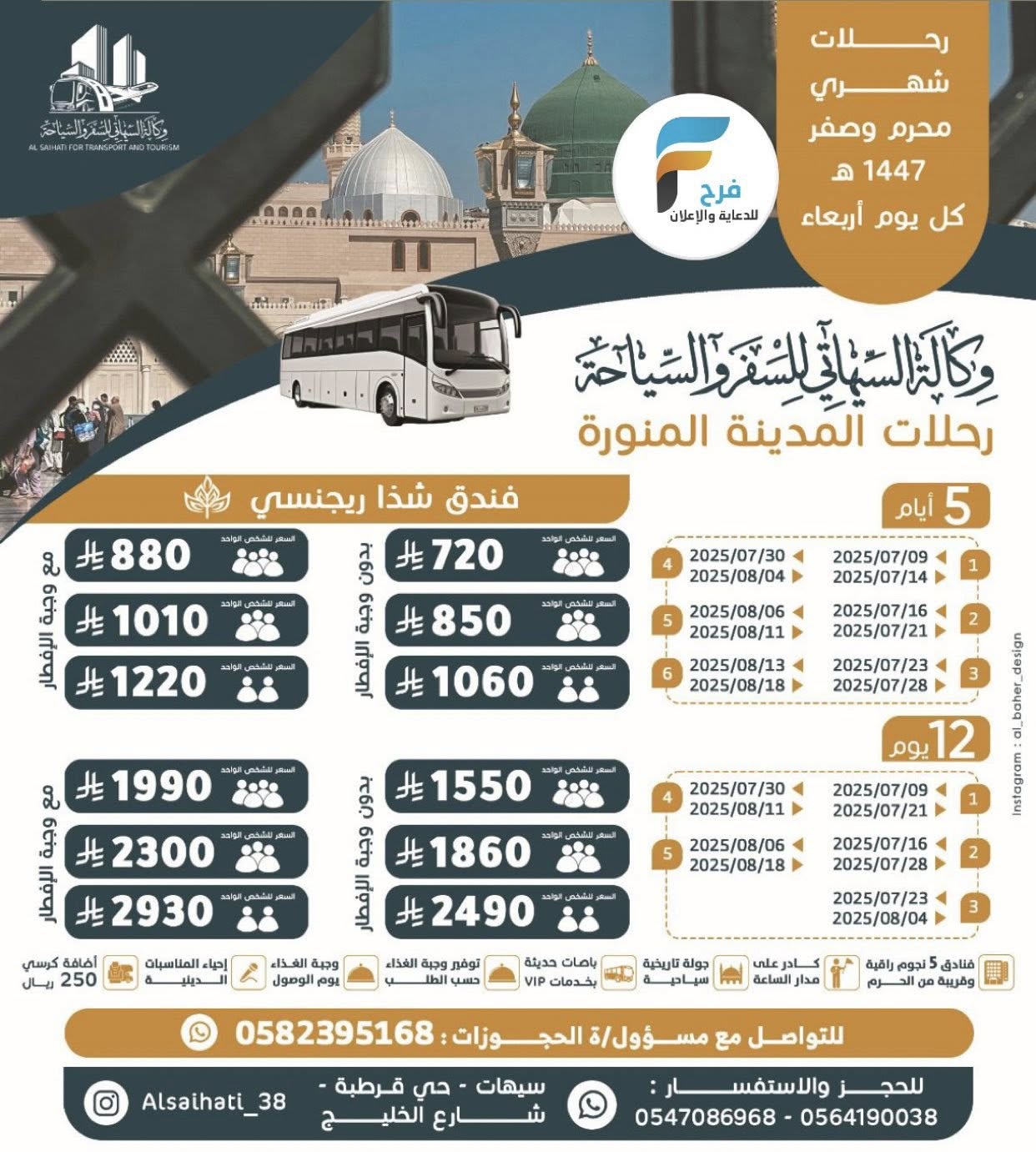 رحلات الطيران والحافلات وكالة السيهاتي للسفر والسياحة شهري محرم وصفر / المدينة المنورة