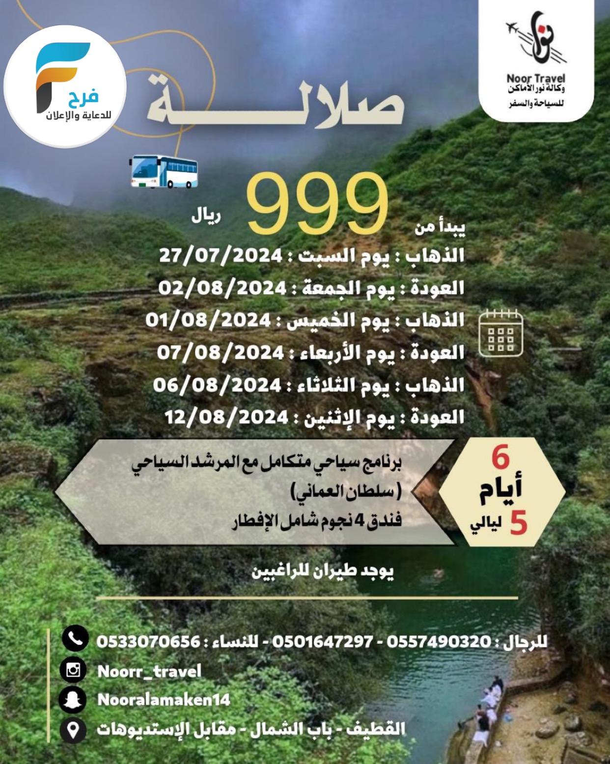 390 ريال تبدأ رحلات وكالة نور شهري محرم وصفر / المدينة المنورة – الكويت – صلالة 29 يوليو، 2024 2 للحجز و الاستفسار : 0501647297 0557490320 0578804845 النساء :0533070656 انستقرام :www.instagram.com أشترك معنا في خدمة فرح : Enter the text or HTML code here شارك هذا الموضوع: النقر للمشاركة على X (فتح في نافذة جديدة) X انقر للمشاركة على فيسبوك (فتح في نافذة جديدة) فيس بوك 199 ريال رحلات قافلة يازهراء أغيثيني / المدينة المنورة – عمرة سريعةالتاريخ6 مارس، 2019في ما يتعلق بما يأتيالعمرة / حملات الاحساء240 ريال سكن من حملة خدر زينب ع / المدينة المنورةالتاريخ7 يونيو، 2019في ما يتعلق بما يأتيالمدينة المنورة / حملات الإحساء160 ريال تبدأ حجوزات الفنادق بمناسبة اليوم الوطني السعودي من تذكرة الأحلام / مكة المكرمة _ المدينة المنورةالتاريخ15 سبتمبر، 2019في ما يتعلق بما يأتيالعمرة / حملات الاحساء