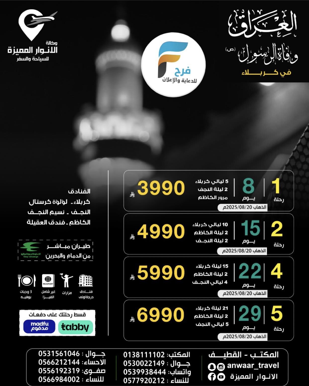 الرئيسية العراق قسط رحلتك مع رحلات وكالة الأنوار المميزة وفاة النبي ص / العراق