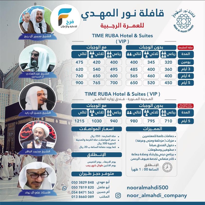 الرئيسية العمرة / حملات القطيف 320 ريال تبدأ رحلات قافلة نور المهدي / العمرة الرجبية والمدينة المنورة