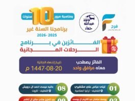 28 فائز في برنامج الرحلات المجانية وكوبونات الخصم بمناسبة مرور سـ9ـنوات على خدمة فرح / هذا البرنامج برعاية قافلة عبدالله حماد وحملة بني هاشم