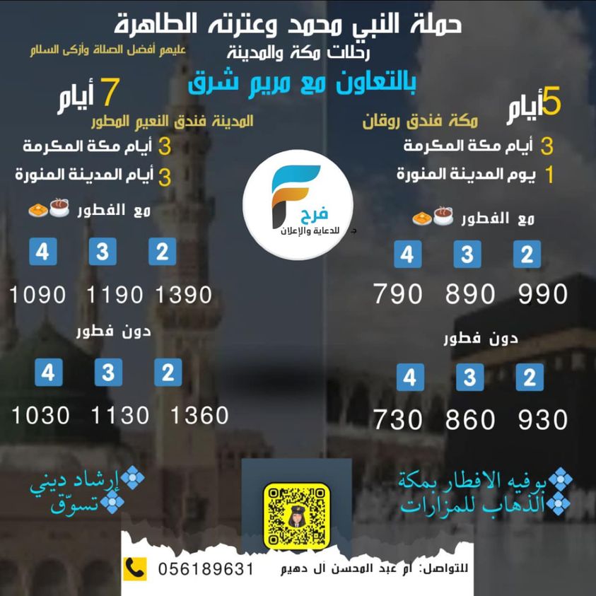 رحلات حملة النبي محمد وعترته ص / العمرة الرجبية والمدينة المنورة 4 فبراير، 2024 لم 1 للحجز و الاستفسار : 0561896316 أشترك معنا في خدمة فرح : Enter the text or HTML code here شارك هذا الموضوع: النقر للمشاركة على X (فتح في نافذة جديدة) X انقر للمشاركة على فيسبوك (فتح في نافذة جديدة) فيس بوك