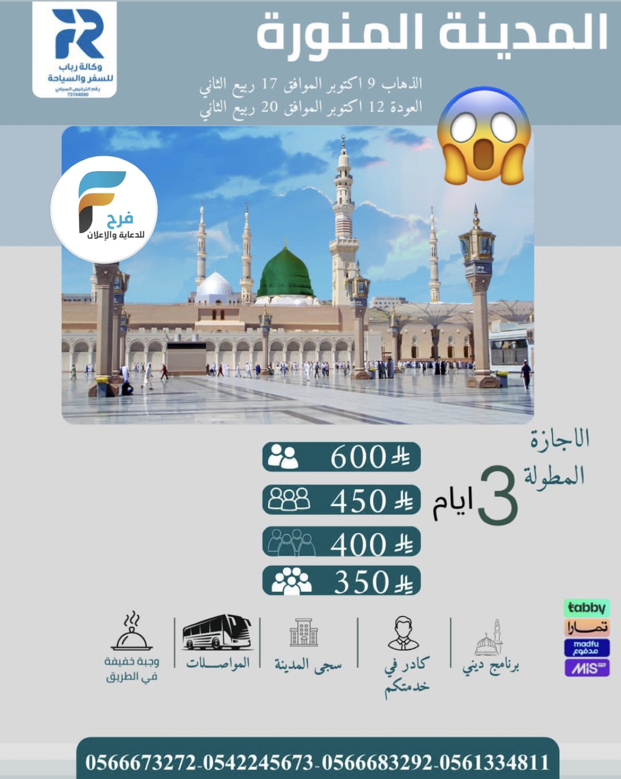 250 ريال تبدأ رحلات وكالة رباب للسفر والسياحة / مكة المكرمة _ المدينة المنورة