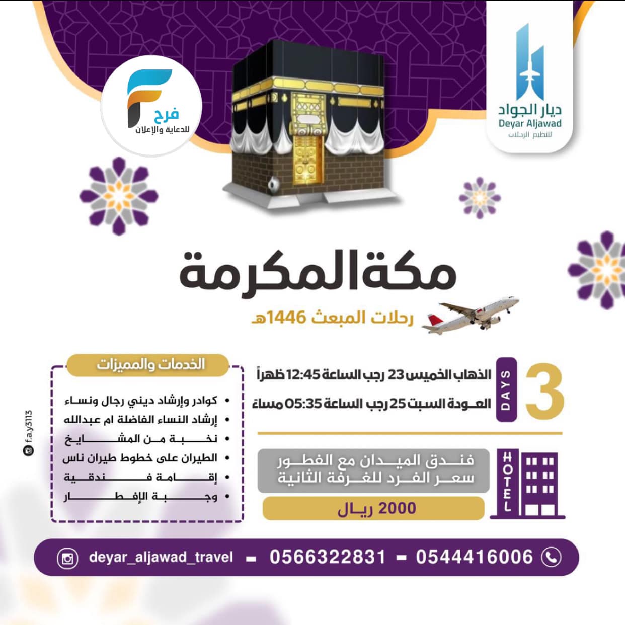 500 ريال تبدأ رحلات الطيران والحافلات ديار الجواد / العمرة الرجبية 19 يناير، 2025 لم 1 للحجز والاستفسار : 0566322831 0544416006 0542726577 0541310222 الانستقرام : www.instagram.com أشترك معنا في خدمة فرح : Enter the text or HTML code here شارك هذا الموضوع: النقر للمشاركة على X (فتح في نافذة جديدة) X انقر للمشاركة على فيسبوك (فتح في نافذة جديدة) فيس بوك شارك أربح عمرة رجبية لك و إلى من تحب من قافلة العليوات / العمرة الرجبية – المدينة المنورةالتاريخ24 فبراير، 2019في ما يتعلق بما يأتيالعمرة / حملات القطيف1200 ريال تبدأ رحلةالطيران للمبعث من المكي للعمرة والزيارة / العمرة الرجبيةالتاريخ28 مارس، 2019في ما يتعلق بما يأتيالعمرة / حملات الاحساء250 ريال تبدأ رحلات حملة السادة للعمرة والزيارة / العمرة الرجبيةالتاريخ3 مارس، 2020في ما يتعلق بما يأتيالعمرة / حملات القطيف