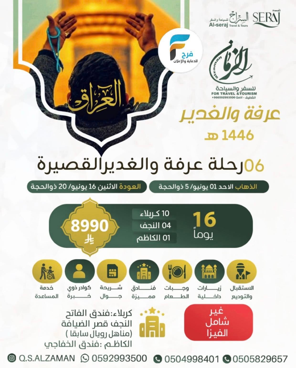 رحلات قافلة صاحب الزمان ع عرفة والغدير كما يتوفر لدينا استخراج تأشيرات / العراق 5 مايو، 2025 1 للحجز والاستفسار0504998401050582965705929935000138532005 انستقرامwww.instagram.com أشترك معنا في خدمة فرح : شارك هذا الموضوع: النقر للمشاركة على X (فتح في نافذة جديدة) X انقر للمشاركة على فيسبوك (فتح في نافذة جديدة) فيس بوك