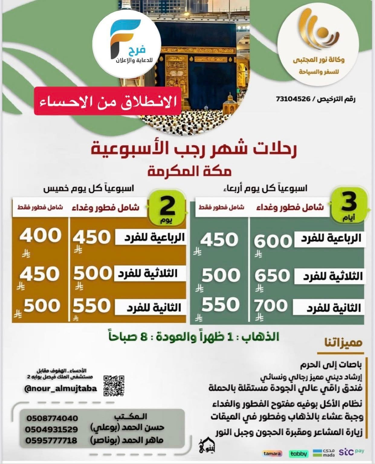 الرئيسية العراق 1450 ريال رحلات الطيران وكالة نور المجتبى الأسبوعية / العمرة الرجبية –...