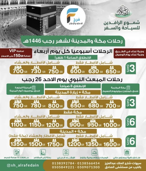 600 ريال تبدأ رحلات شموع الرافدين شهر رجب / العمرة الرجبية والمدينة المنورة