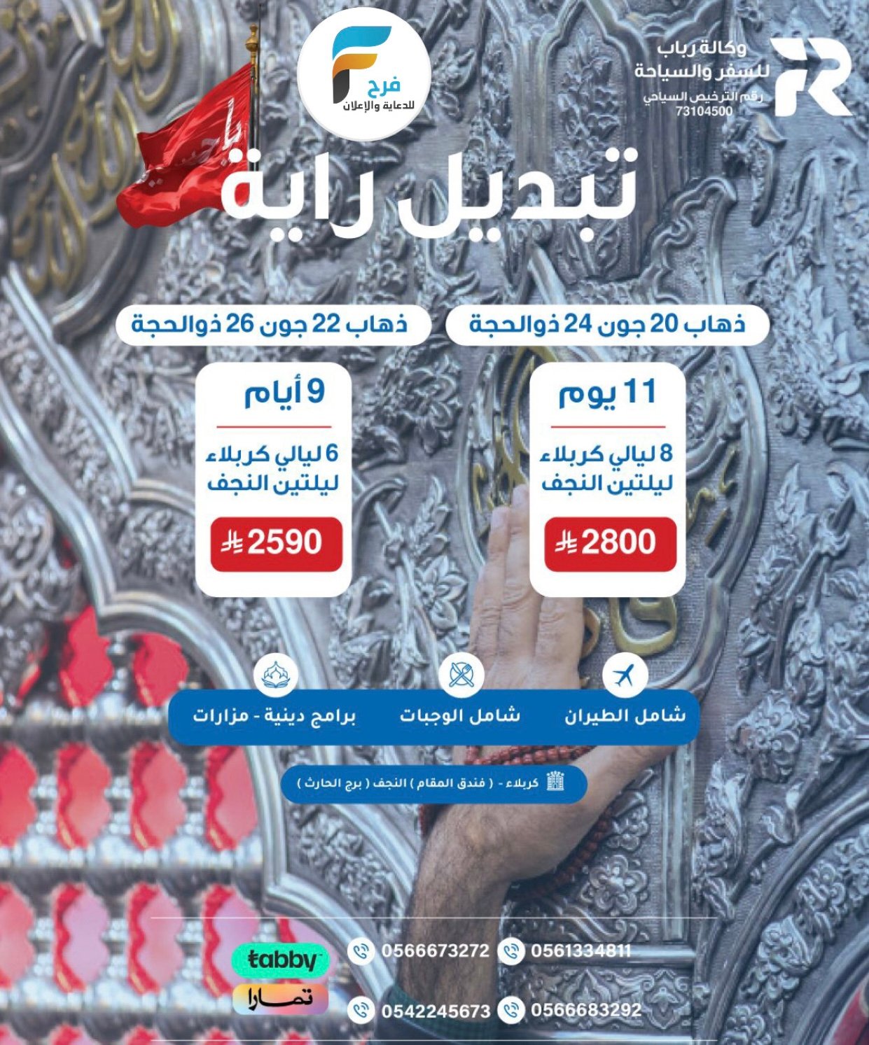 400 ريال تبدأ رحلات وكالة رباب للسفر والسياحة إجازة الخريف / مكة والمدينة – مكة المكرمة – المدينة المنورة 12 نوفمبر، 2025 لم 4 ب ق 500 للحجز والإستفسار : 0542245673056667327205613348110566683292 انستقرام www.instagram.com سناب شاتwww.snapchat.com أشترك معنا في خدمة فرح : شارك هذا الموضوع: النقر للمشاركة على X (فتح في نافذة جديدة) X انقر للمشاركة على فيسبوك (فتح في نافذة جديدة) فيس بوك 160 ريال تبدأ حجوزات الفنادق بمناسبة اليوم الوطني السعودي من تذكرة الأحلام / مكة المكرمة _ المدينة المنورةالتاريخ15 سبتمبر، 2019في ما يتعلق بما يأتيالعمرة / حملات الاحساءشارك أربح عمرة رجبية لك و إلى من تحب من قافلة العليوات / العمرة الرجبية – المدينة المنورةالتاريخ24 فبراير، 2019في ما يتعلق بما يأتيالعمرة / حملات القطيفاستخرج التأشيرة بخدمة سريعة وآمنة – رحلات يومياً بالحافلات الفيروز / العراق – مكة المكرمة – المدينة المنورة – قطر – الكويت – دبي – عمانالتاريخ23 أغسطس، 2025في ما يتعلق بما يأتيالعراق