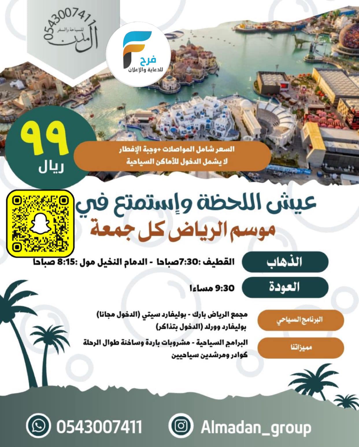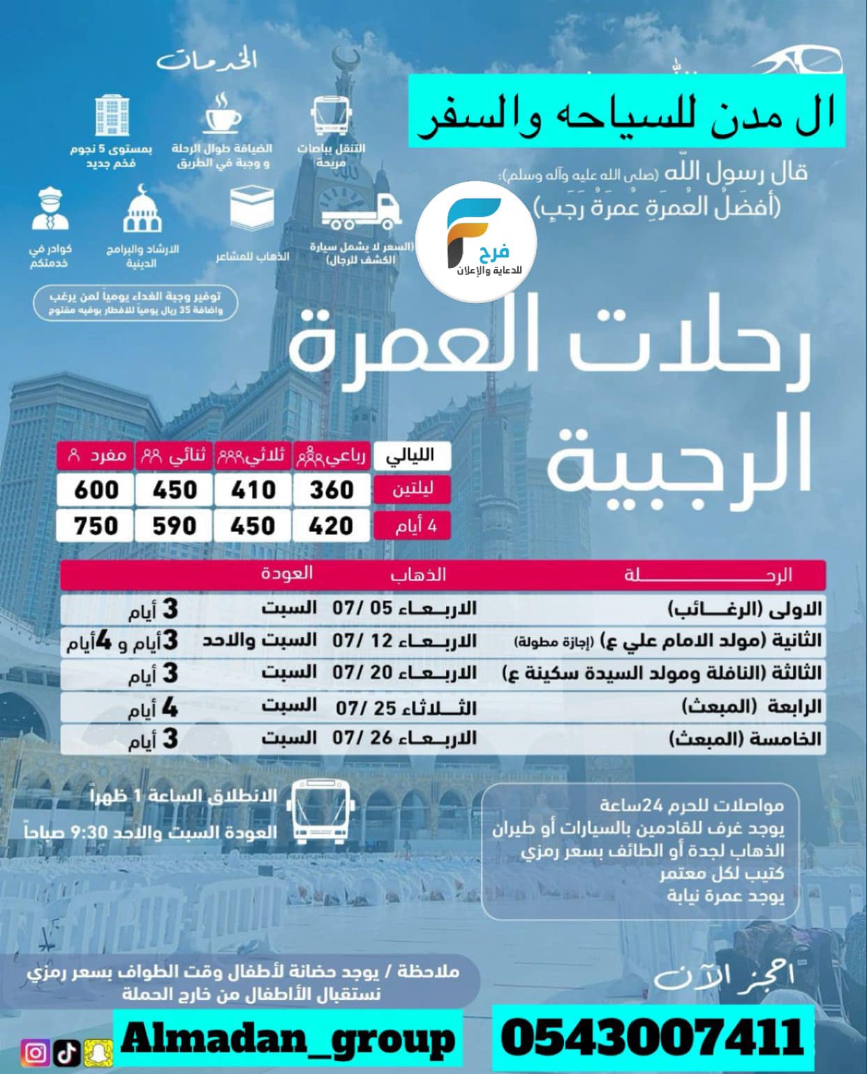 50 ريال تبدأ رحلات حملة آل مدن / الاحساء – الرياض – قطر – الكويت – العمرة الرجبية 4 فبراير، 2024 5 للحجز و الاستفسار : 0543007411 سناب :https://www.snapchat.com أشترك معنا في خدمة فرح : Enter the text or HTML code here شارك هذا الموضوع: النقر للمشاركة على X (فتح في نافذة جديدة) X انقر للمشاركة على فيسبوك (فتح في نافذة جديدة) فيس بوك