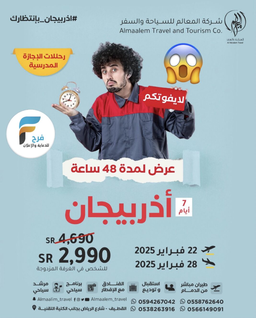 1700 ريال خصم رحلات شركة المعالم للسياحة والسفر الإجازة / اذربيجان 30 يناير، 2025 لم 17 للحجز أو الاستفسار : 0594267042 0503865143 0503806133 0558762640 0554380342 0538263916 0564638766 الانستقرام : https://www.instagram.com/ أشترك معنا في خدمة فرح : Enter the text or HTML code here شارك هذا الموضوع: النقر للمشاركة على X (فتح في نافذة جديدة) X انقر للمشاركة على فيسبوك (فتح في نافذة جديدة) فيس بوك معجب بهذه:إعجاب تحميل... مرتبط