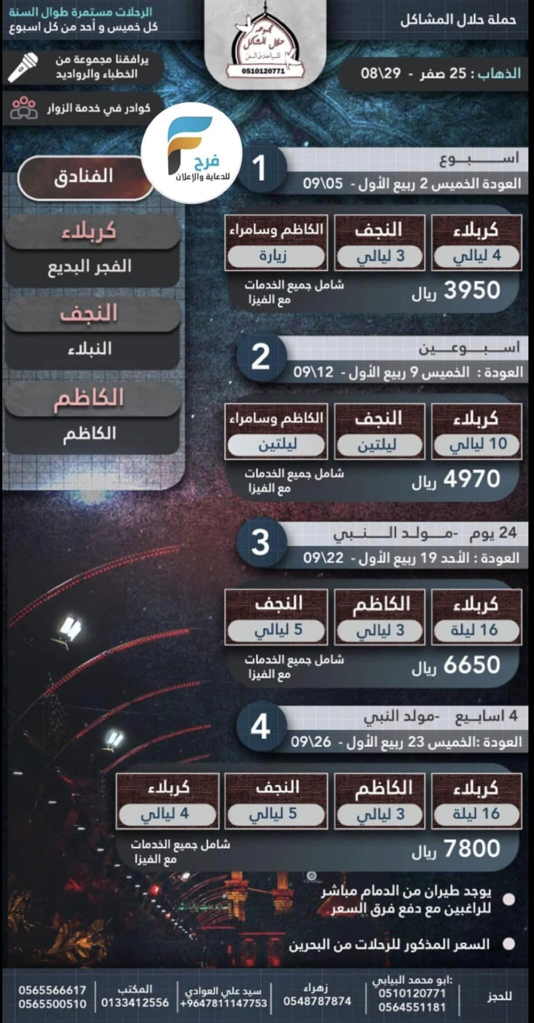 300 ريال خصم رحلات الحافلات والطيران مجموعة حلال المشاكل زيارة الأربعين / العراق 21 يوليو، 2024 3 🌺 مجموعة حلال المشاكل🌺 للحجز و الاستفسار : 0548787874 0565500510 0133412556 0565566617 0564551181 أبو محمد البيابي 0510120771 أشترك معنا في خدمة فرح : Enter the text or HTML code here شارك هذا الموضوع: النقر للمشاركة على X (فتح في نافذة جديدة) X انقر للمشاركة على فيسبوك (فتح في نافذة جديدة) فيس بوك معجب بهذه:إعجاب تحميل... مرتبط