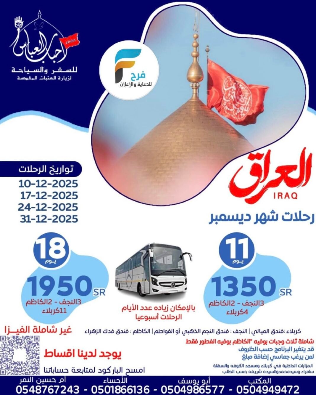 الرئيسية العراق 1350 ريال تبدأ رحلات الحافلات والطيران وكالة احباب العباس شهري رجب وشعبان...