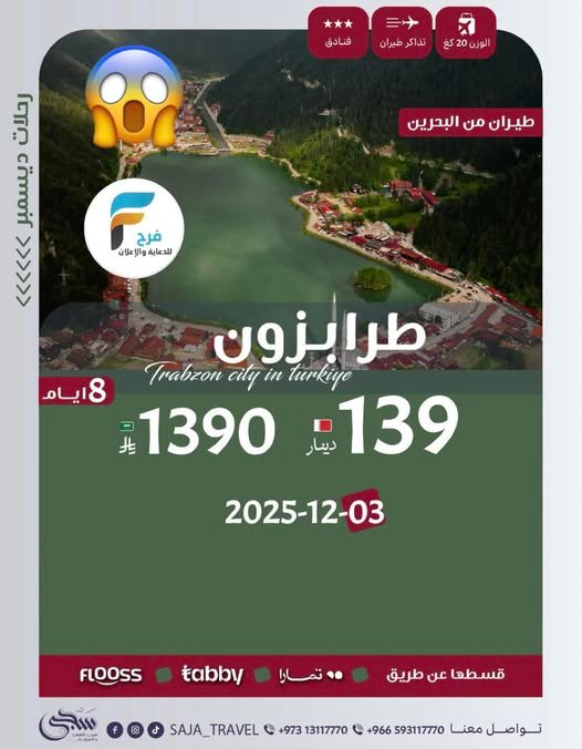 1390 ريال عرض رحلة سجى للسفر والسياحة / تركيا 29 نوفمبر، 2025 56 للحجز والإستفسار : السعودية :- 0593117770 البحرين :- 0097313117770 0097332111565 ♦ الانستقرام :- saja_travel أشترك معنا في خدمة فرح : شارك هذا الموضوع: النقر للمشاركة على X (فتح في نافذة جديدة) X انقر للمشاركة على فيسبوك (فتح في نافذة جديدة) فيس بوك معجب بهذه:إعجاب تحميل... مرتبط