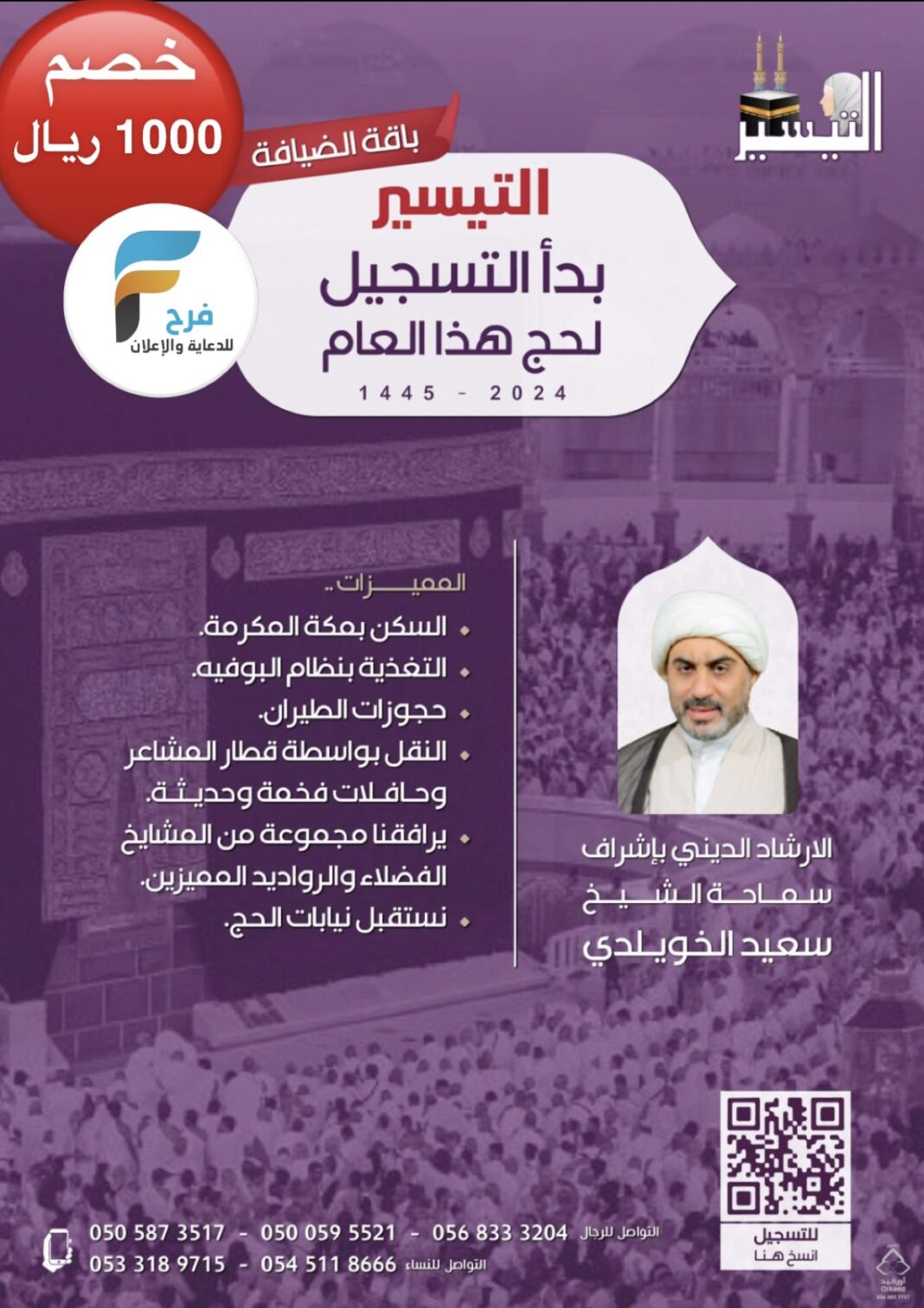 تعلن حملة التيسير لحج هذا العام 1445هـ عن عرضها الخاص.