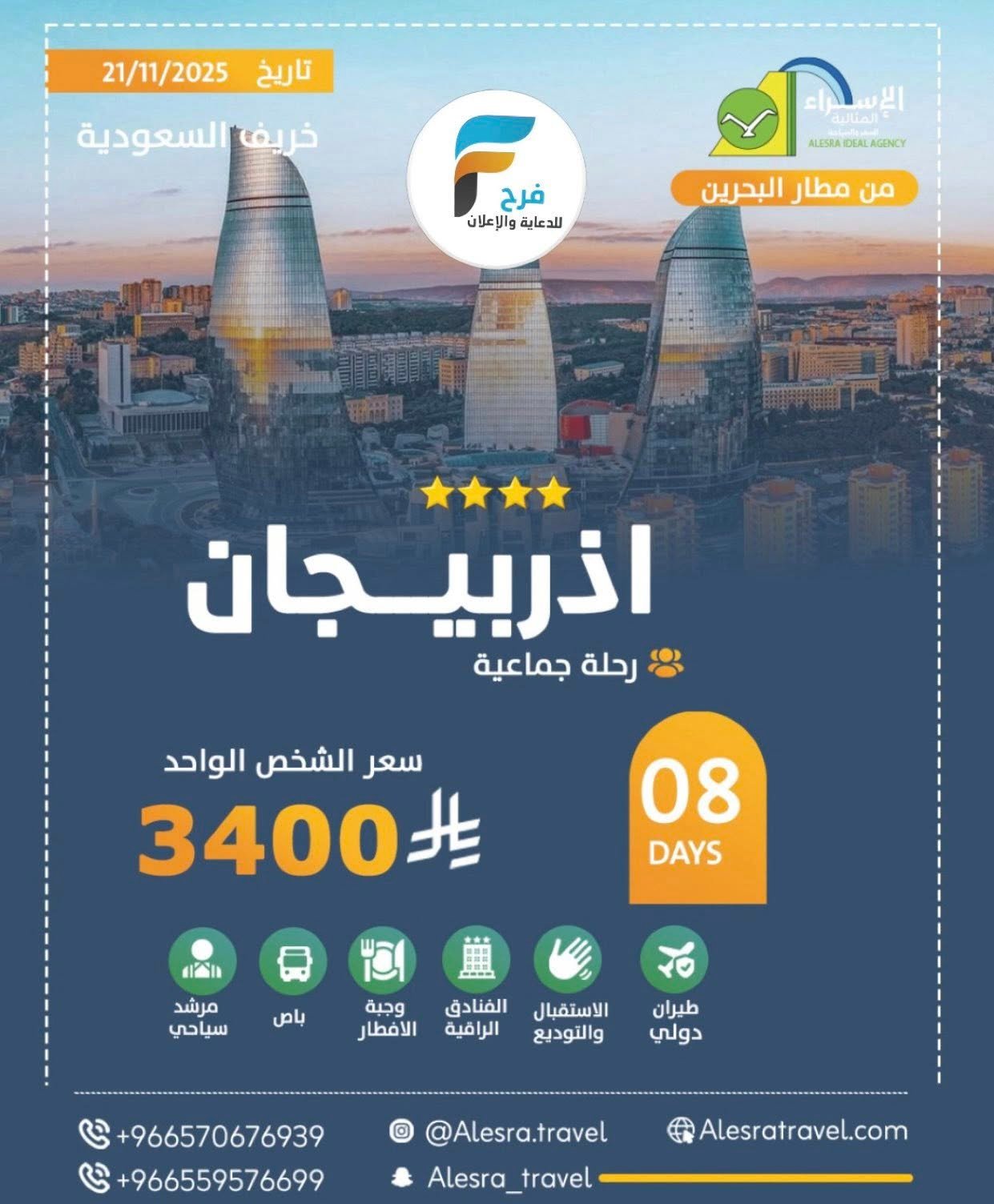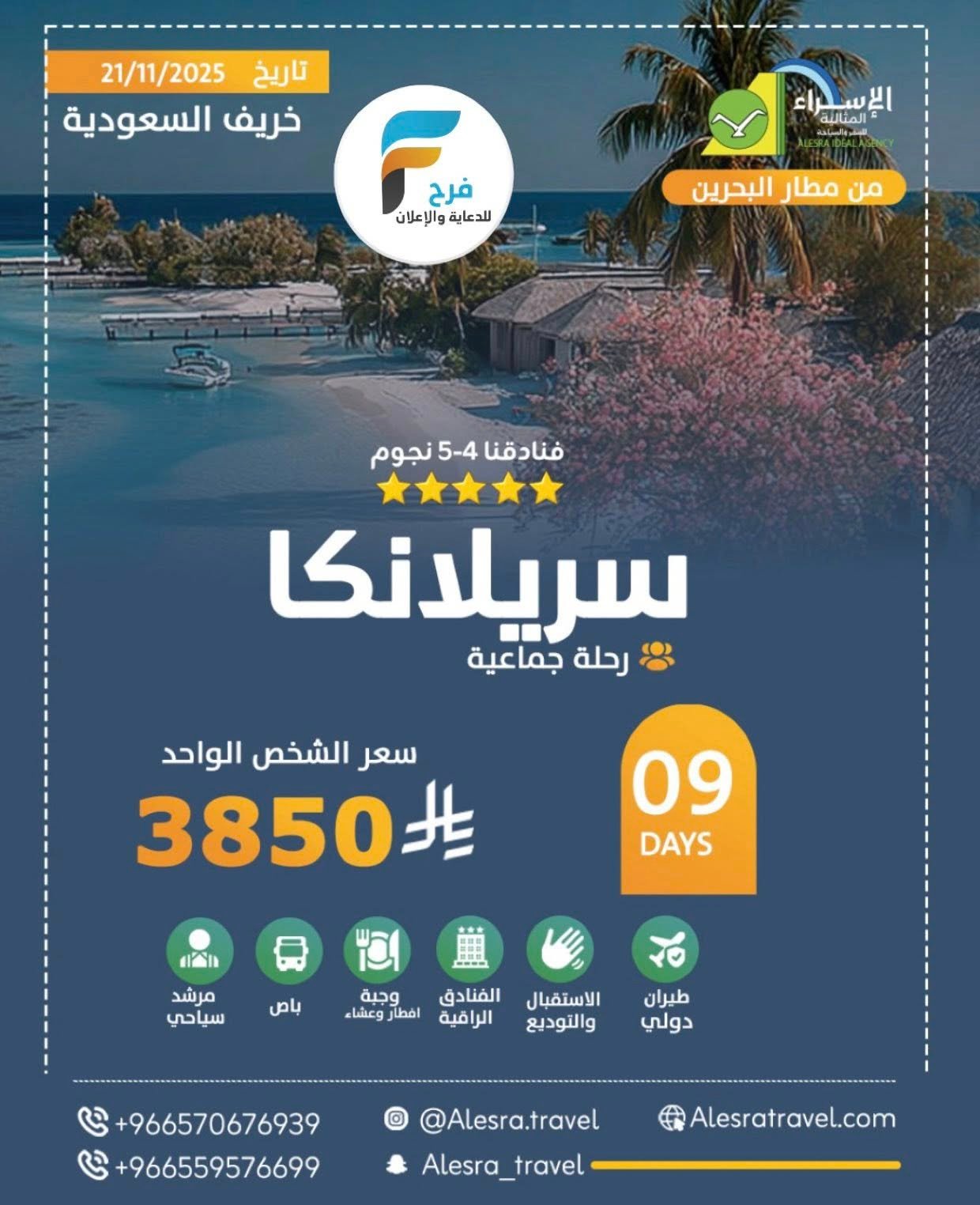 1850 ريال تبدأ رحلات وكالة الاسراء المثالية للسفر والسياحة إجازة الخريف / قيرغيستان – مصر – اذربيجان – سريلانكا 8 نوفمبر، 2025 2للحجز والإستفسار :05706769390559576699♦ الانستقرام :-www.instagram.com♦السناب :-www.snapchat.comأشترك معنا في خدمة فرح :
