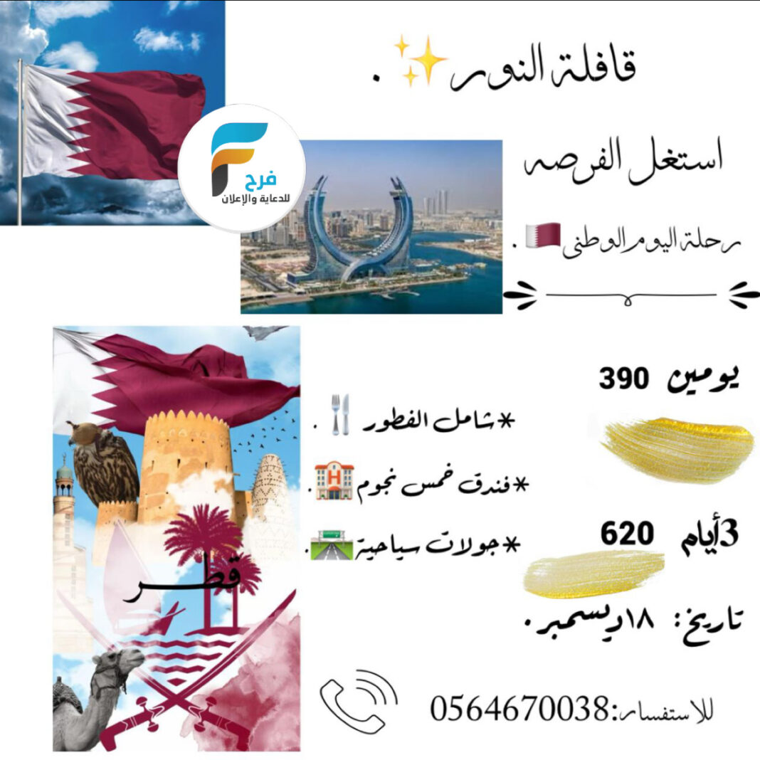 390 ريال تبدأ رحلات قافلة النور / قطر 15 ديسمبر، 2024 لم 1 للحجز والإستفسار : 0564670038 أشترك معنا في خدمة فرح : Enter the text or HTML code here شارك هذا الموضوع: النقر للمشاركة على X (فتح في نافذة جديدة) X انقر للمشاركة على فيسبوك (فتح في نافذة جديدة) فيس بوك معجب بهذه:إعجاب تحميل... مرتبط
