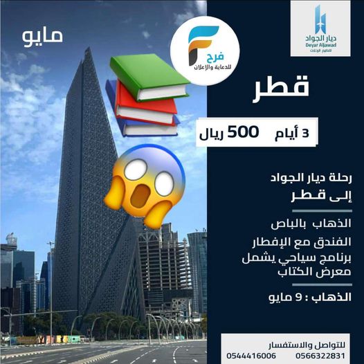 500 ريال 3 أيام رحلة ديار الجواد / قطر 5 مايو، 2024 10 للحجز والاستفسار : 0566322831 0544416006 0542726577 0541310222 الانستقرام : www.instagram.com أشترك معنا في خدمة فرح : Enter the text or HTML code here شارك هذا الموضوع: النقر للمشاركة على X (فتح في نافذة جديدة) X انقر للمشاركة على فيسبوك (فتح في نافذة جديدة) فيس بوك معجب بهذه:إعجاب تحميل... مرتبط