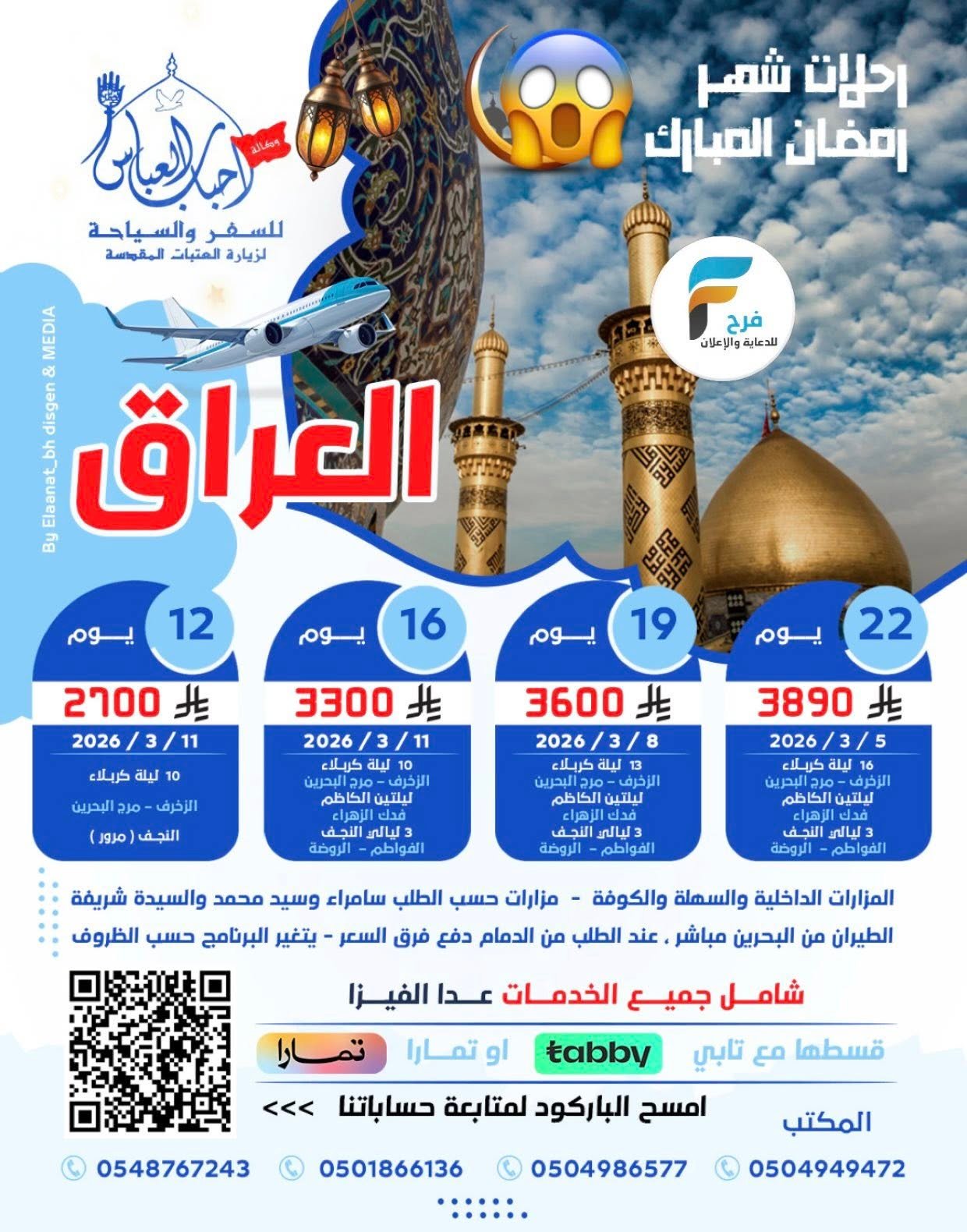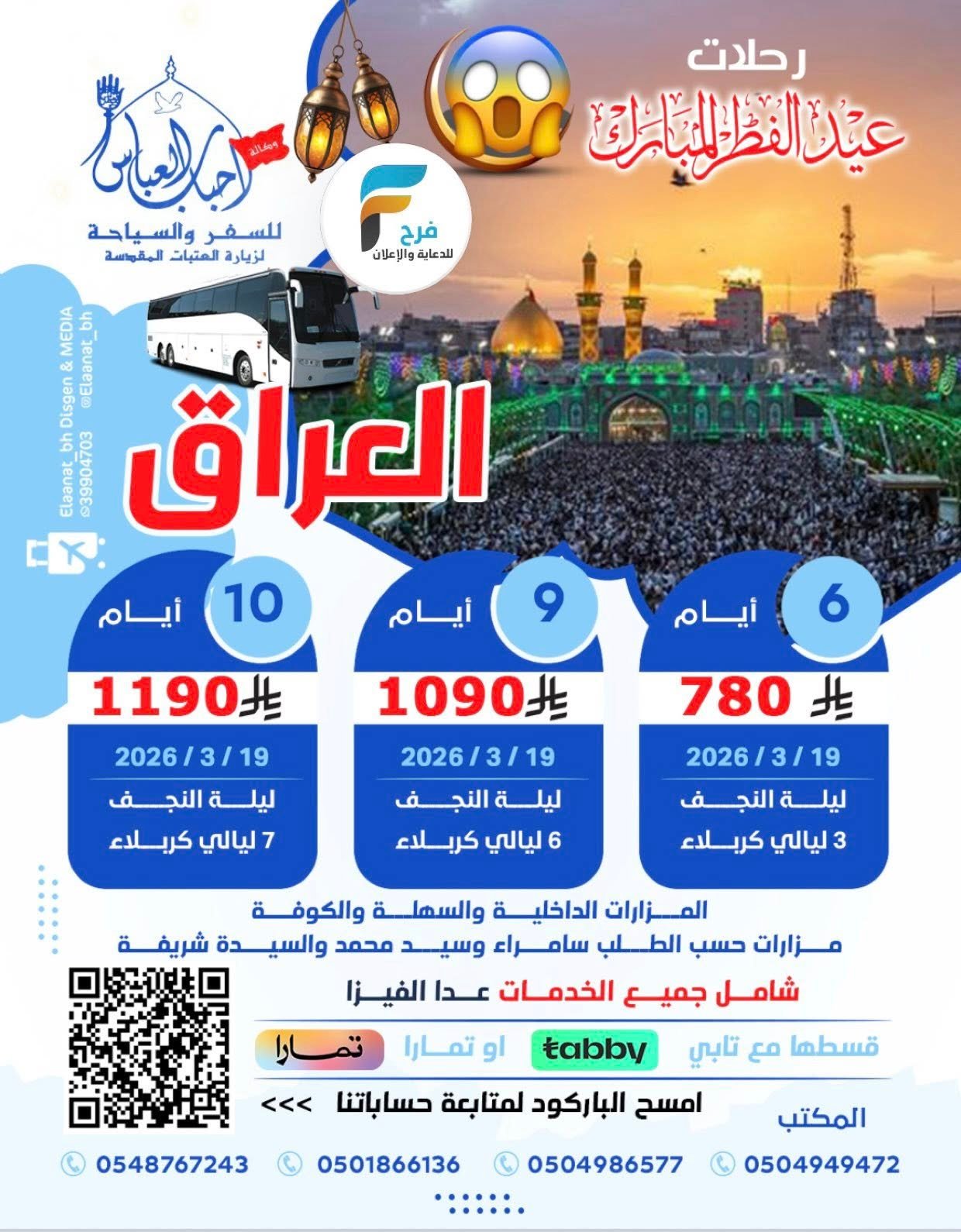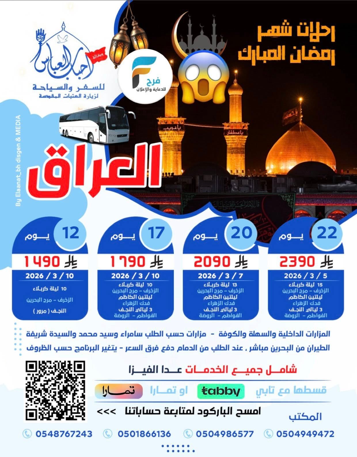 الرئيسية العراق 700 ريال تبدأ رحلات الحافلات والطيران وكالة احباب العباس شهر رمضان /...
