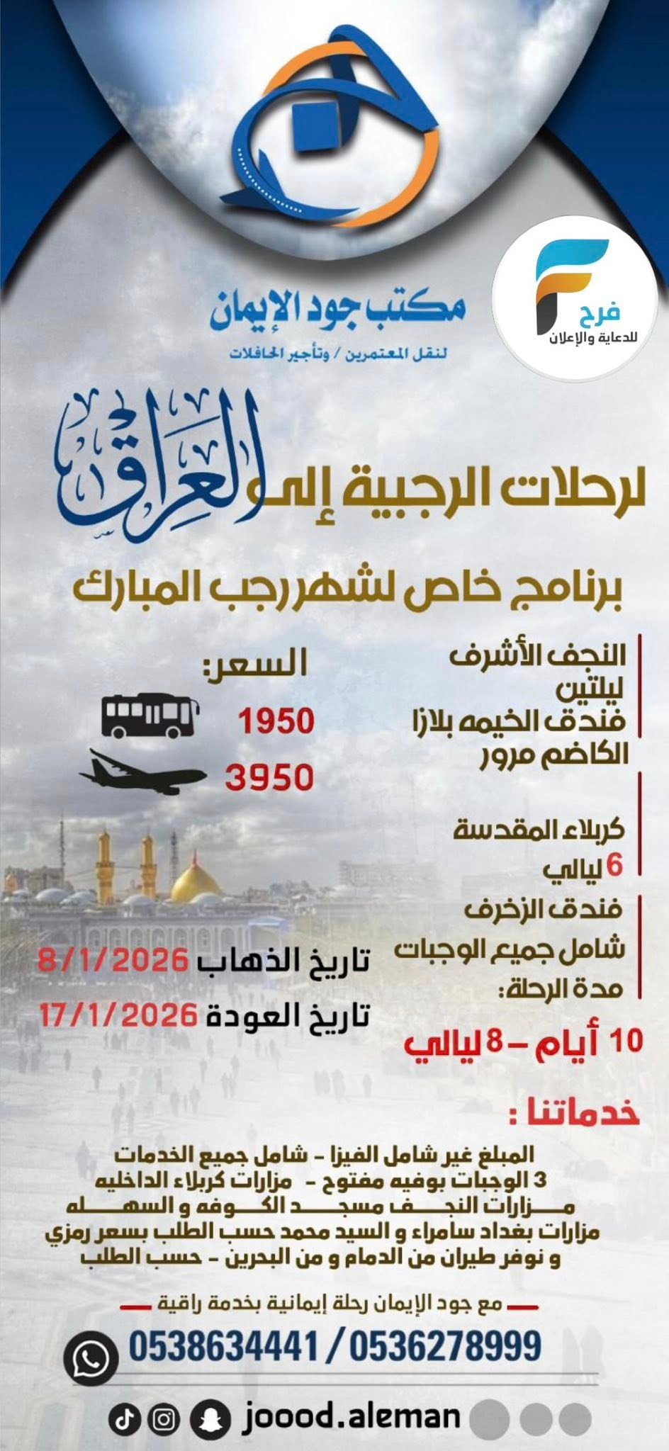 1950 ريال تبدأ رحلات الحافلات والطيران مكتب جود الايمان / العراق