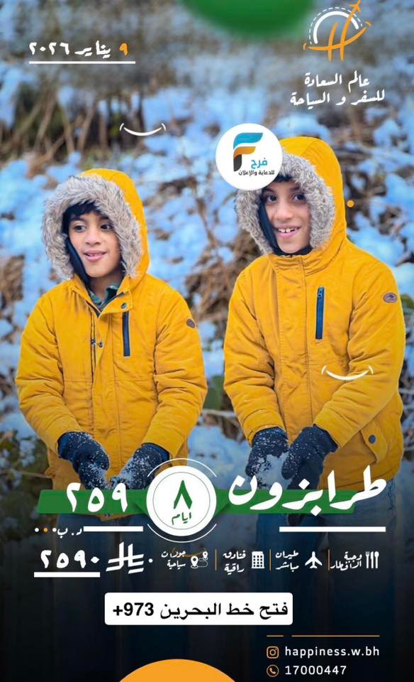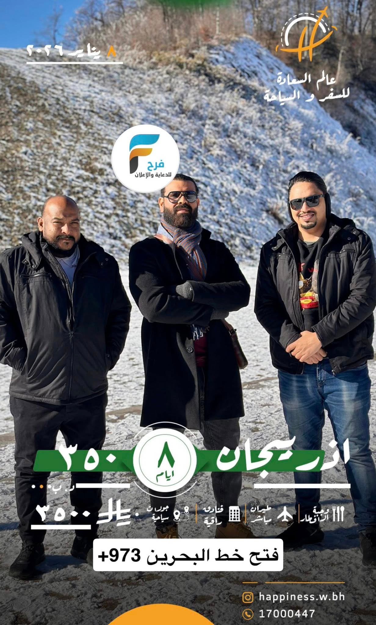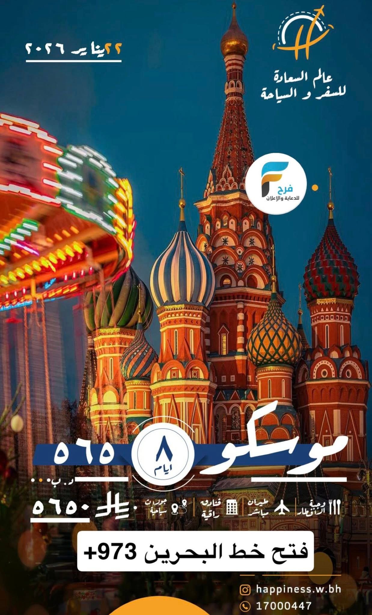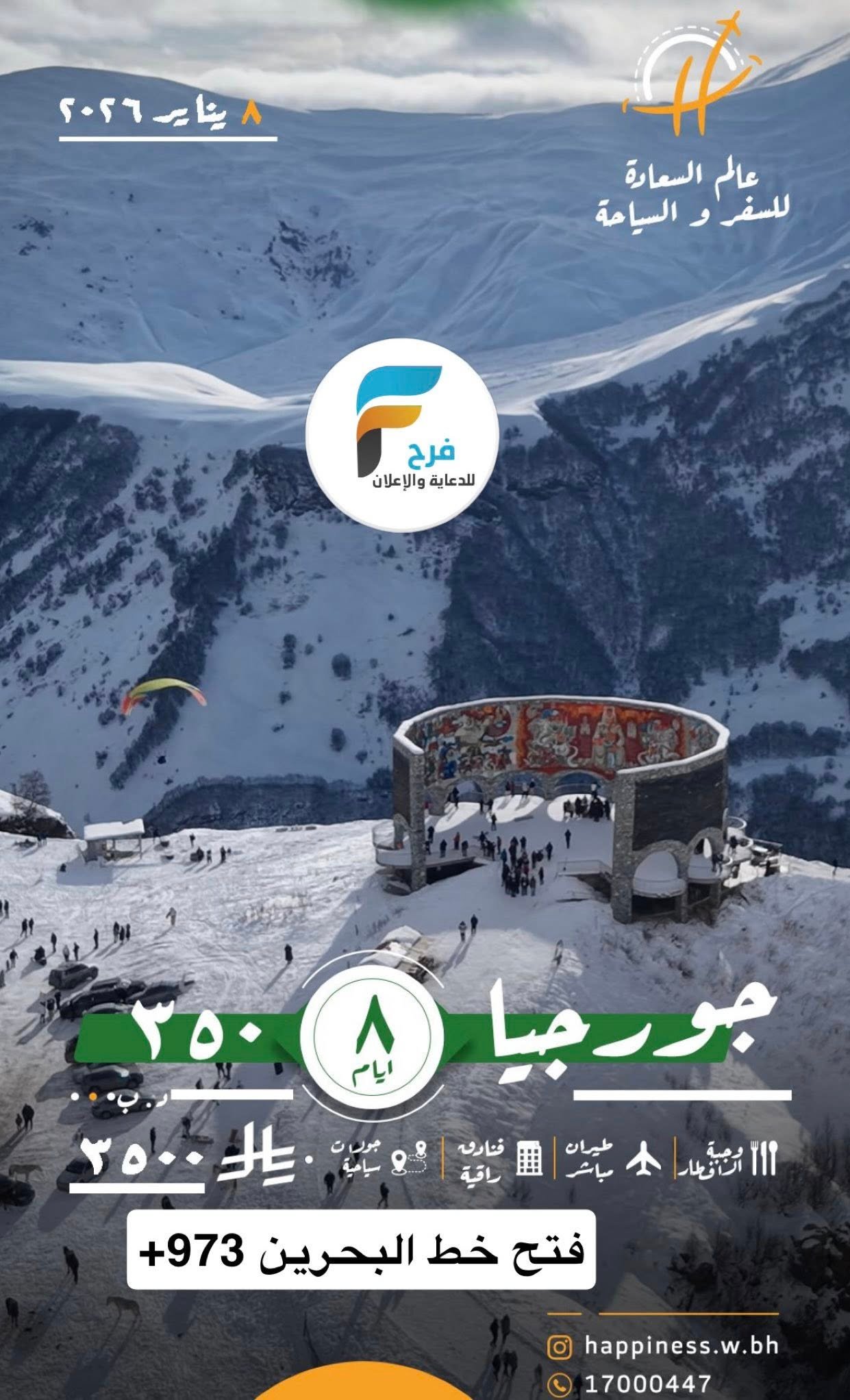 2950 ريال تبدأ رحلات عالم السعادة للسفر والسياحة / تركيا – جورجيا – اذربيجان – روسيا 28 ديسمبر، 20252للحجز و الاستفسار : 0097317000447الانستقرام:www.instagram.comأشترك معنا في خدمة فرح :