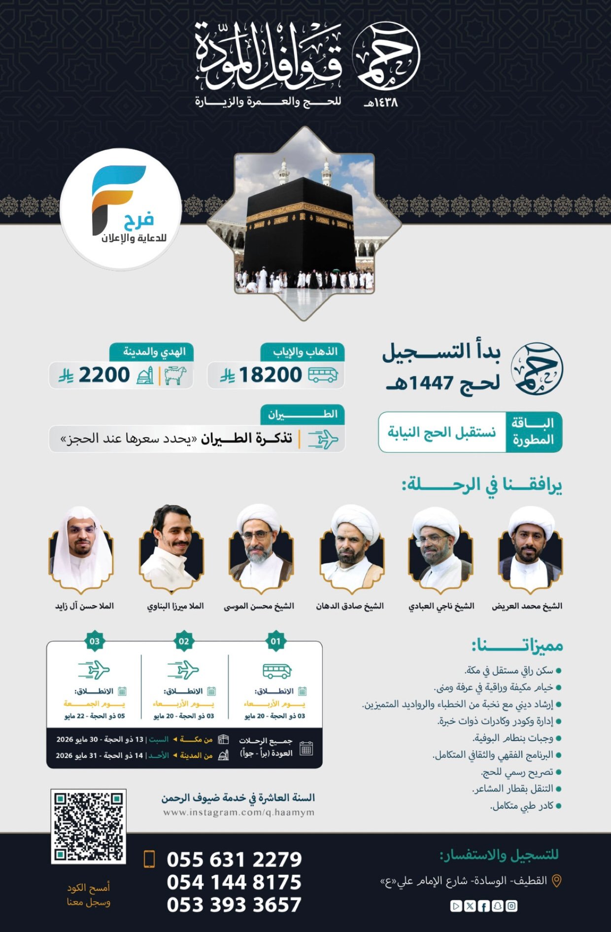 الرئيسية الحج التسجيل مستمر رحلات قوافل المودة ( حم ) / حج عام 1447...