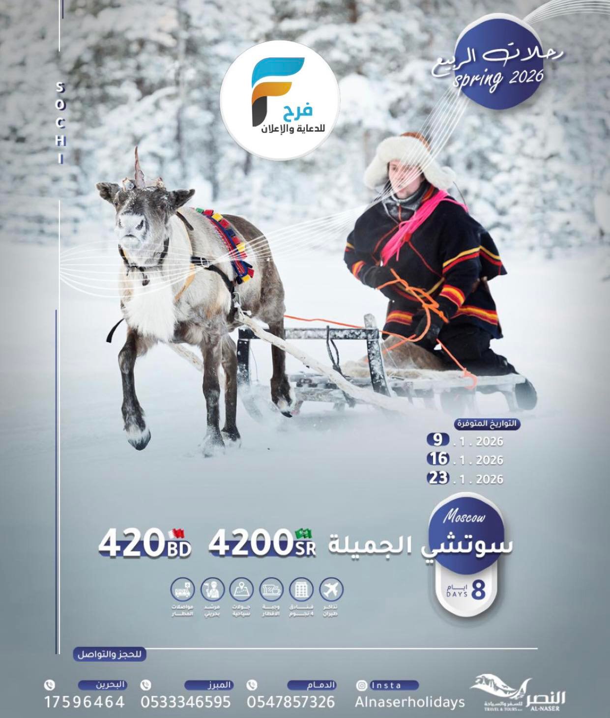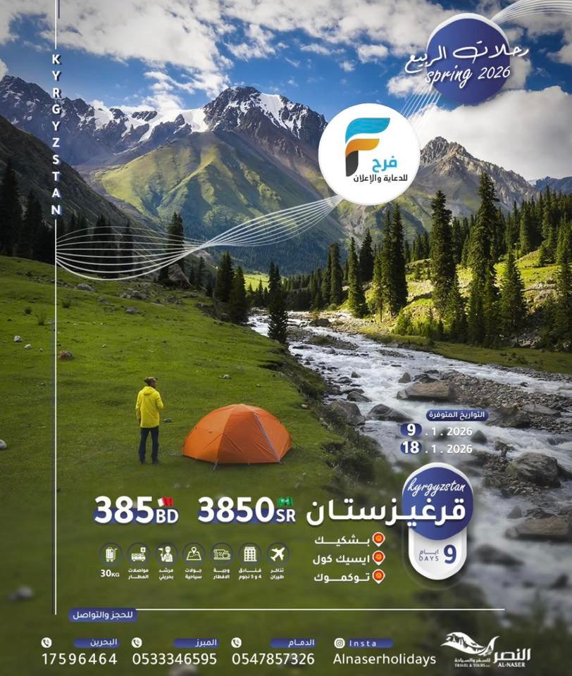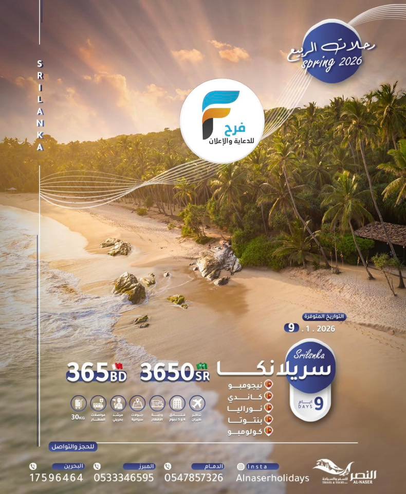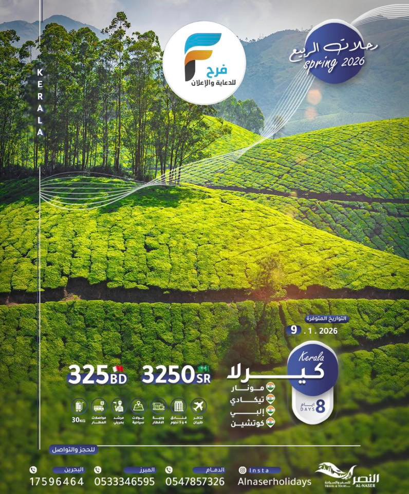 3250 ريال تبدأ رحلات النصر للسفر والسياحة / ماليزيا – الهند – روسيا – سريلانكا – قرغيزستان 25 ديسمبر، 2025 48 للحجز والإستفسار :- 0533346595 0547857326 0097317593388 0097317596464 0097334436654 0097333141911 0097334455456 ⚫للاشتراك في خدمة واتس اب سفريات النصر 📱 احفظ الرقم و ارسل كلمة ” النصر ” على 👇. whatsapp :+97334436654 🔴للمتابعة على الانستغرام 👇. instagram.com/alnasertravel 🔵للإستفسار يرجى مراسلتنا بالضغط على الرابط مباشرة :👇👇👇👇 whatsapp.send97334436654 أشترك معنا في خدمة فرح :