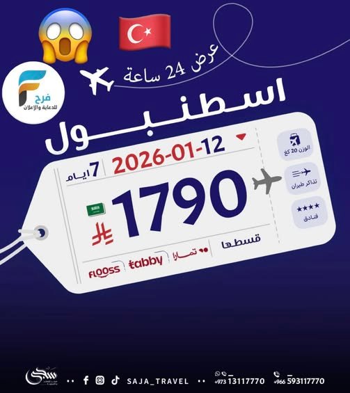 1790 ريال عرض ما يفوت لمدة يوم رحلة سجى للسفر والسياحة / تركيا