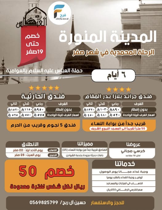 450 ريال يبدأ السكن – رحلات حملة العباس الرحلة المحمدية / المدينة المنورة 4 أغسطس، 2025 1 للحجز والاستفسار : 0569825799 الانستقرام: www.instagram.com السناب: www.snapchat.com أشترك معنا في خدمة فرح : Enter the text or HTML code here شارك هذا الموضوع: النقر للمشاركة على X (فتح في نافذة جديدة) X انقر للمشاركة على فيسبوك (فتح في نافذة جديدة) فيس بوك معجب بهذه:إعجاب تحميل... مرتبط