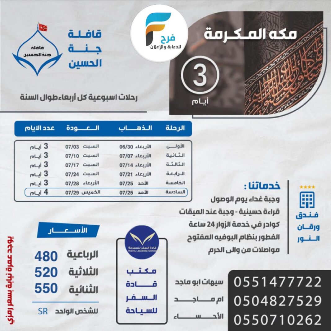 480 ريال تبدأ رحلات قافلة جنة الحسين / العمرة الرجبية – العراق 27 ديسمبر، 2024 1 للحجز والاستفسار : 0551477722 0504827529 0550710262 0563123471 أشترك معنا في خدمة فرح : Enter the text or HTML code here شارك هذا الموضوع: النقر للمشاركة على X (فتح في نافذة جديدة) X انقر للمشاركة على فيسبوك (فتح في نافذة جديدة) فيس بوك معجب بهذه:إعجاب تحميل... مرتبط