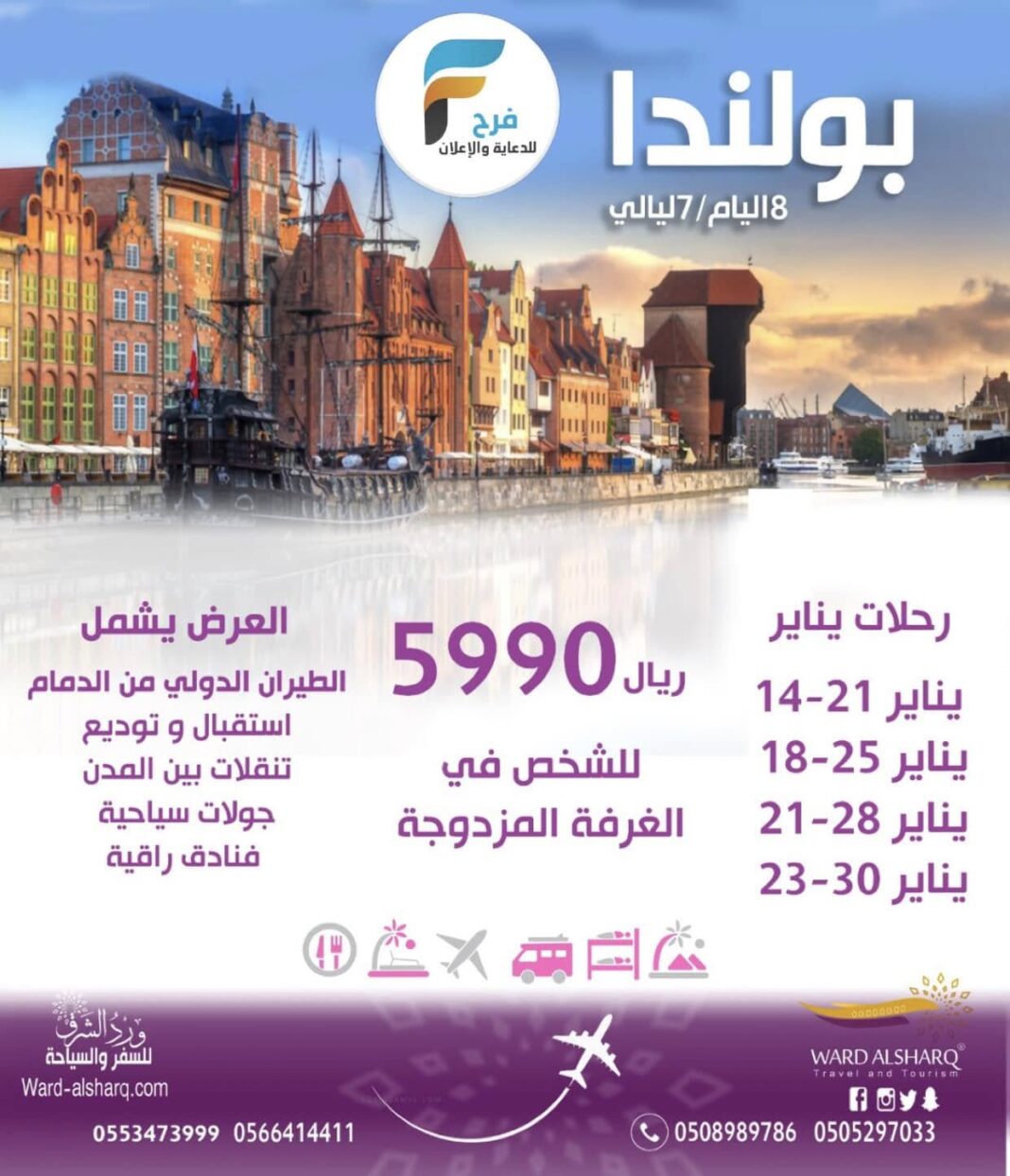 1500 ريال تبدأ رحلات شركة ورود الشرق للسفر والسياحة / بولندا – كروز الخليج – تركيا – مصر 18 يناير، 2025 2 للحجز والإستفسار:- 0553473999056641441105089897860505297033 أشترك معنا في خدمة فرح : Enter the text or HTML code here شارك هذا الموضوع: النقر للمشاركة على X (فتح في نافذة جديدة) X انقر للمشاركة على فيسبوك (فتح في نافذة جديدة) فيس بوك معجب بهذه:إعجاب تحميل... مرتبط