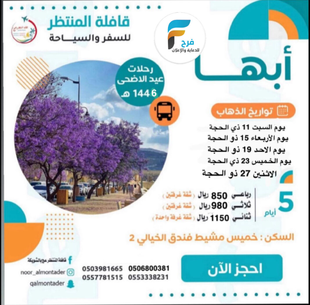 للحجز والاستفسار تواصل مع مكتب الحجوزات بالشويكة