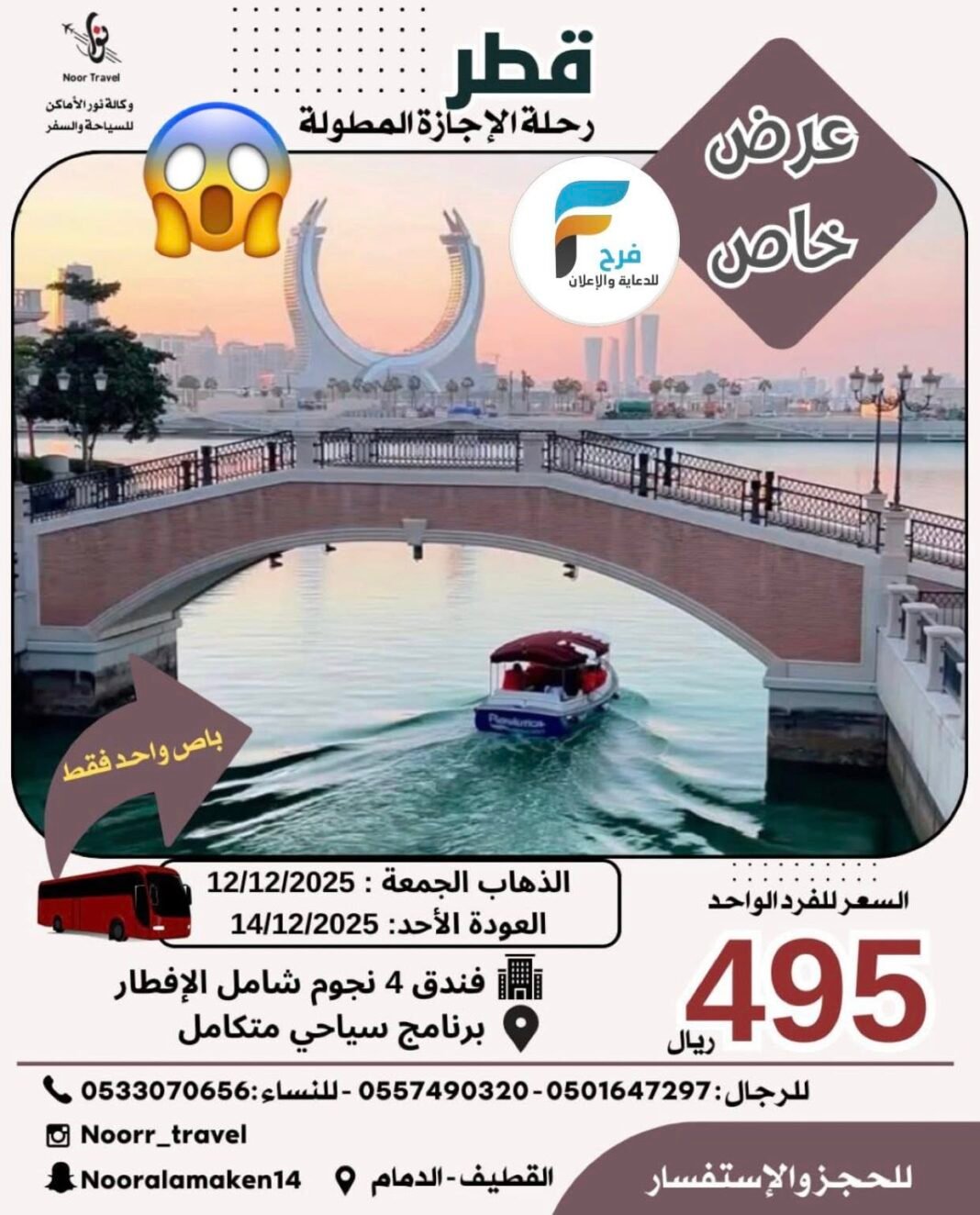 495 ريال تبدأ رحلات وكالة نور الاماكن الإجازة المطولة / قطر 9 ديسمبر، 2025 825-09-27 للحجز و الاستفسار : 0501647297 0557490320 النساء :0533070656 انستقرام :www.instagram.com أشترك معنا في خدمة فرح : شارك هذا الموضوع: النقر للمشاركة على X (فتح في نافذة جديدة) X انقر للمشاركة على فيسبوك (فتح في نافذة جديدة) فيس بوك معجب بهذه:إعجاب تحميل... مرتبط