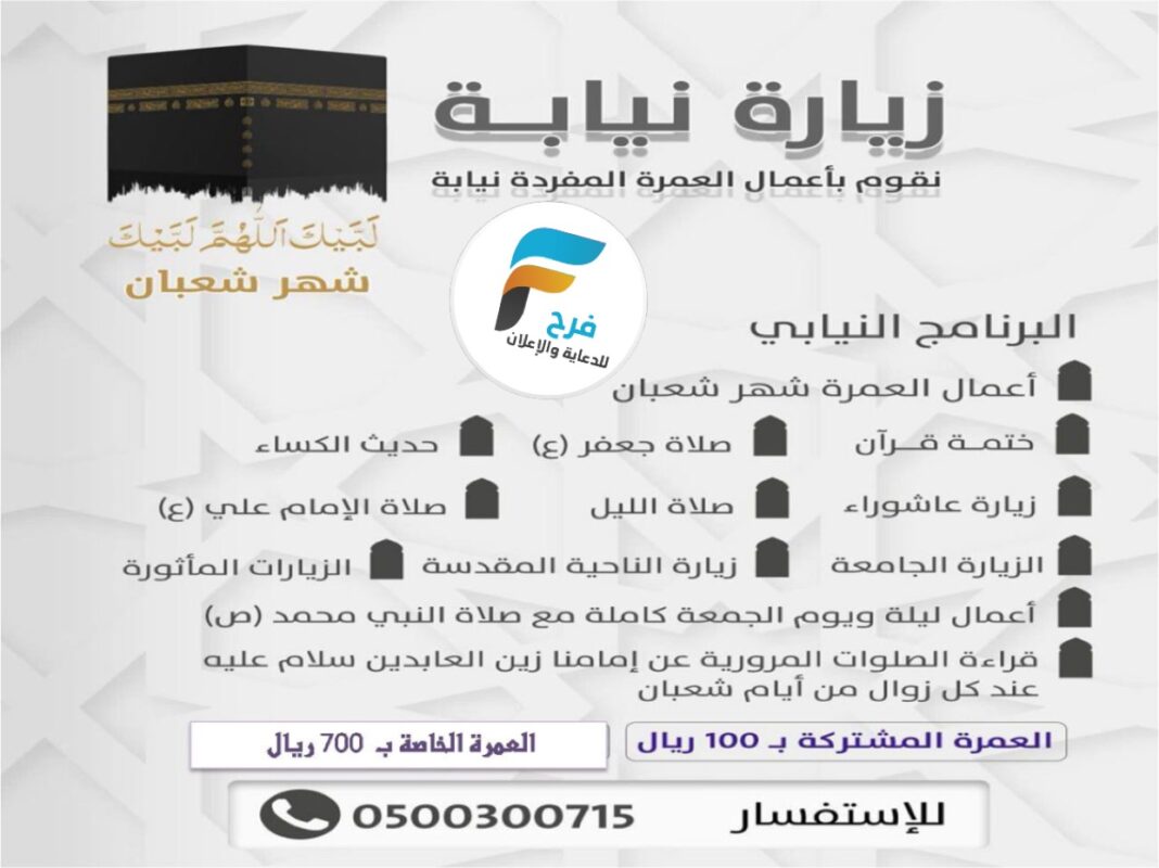 100 ريال تبدأ أسعار العمرة النيابة المفردة والمشتركة كما نقوم بأعمال بالنيابة 21 فبراير، 2024 1 للحجز أو الاستفسار : 0500300715 أشترك معنا في خدمة فرح : Enter the text or HTML code here شارك هذا الموضوع: النقر للمشاركة على X (فتح في نافذة جديدة) X انقر للمشاركة على فيسبوك (فتح في نافذة جديدة) فيس بوك معجب بهذه:إعجاب تحميل... مرتبط