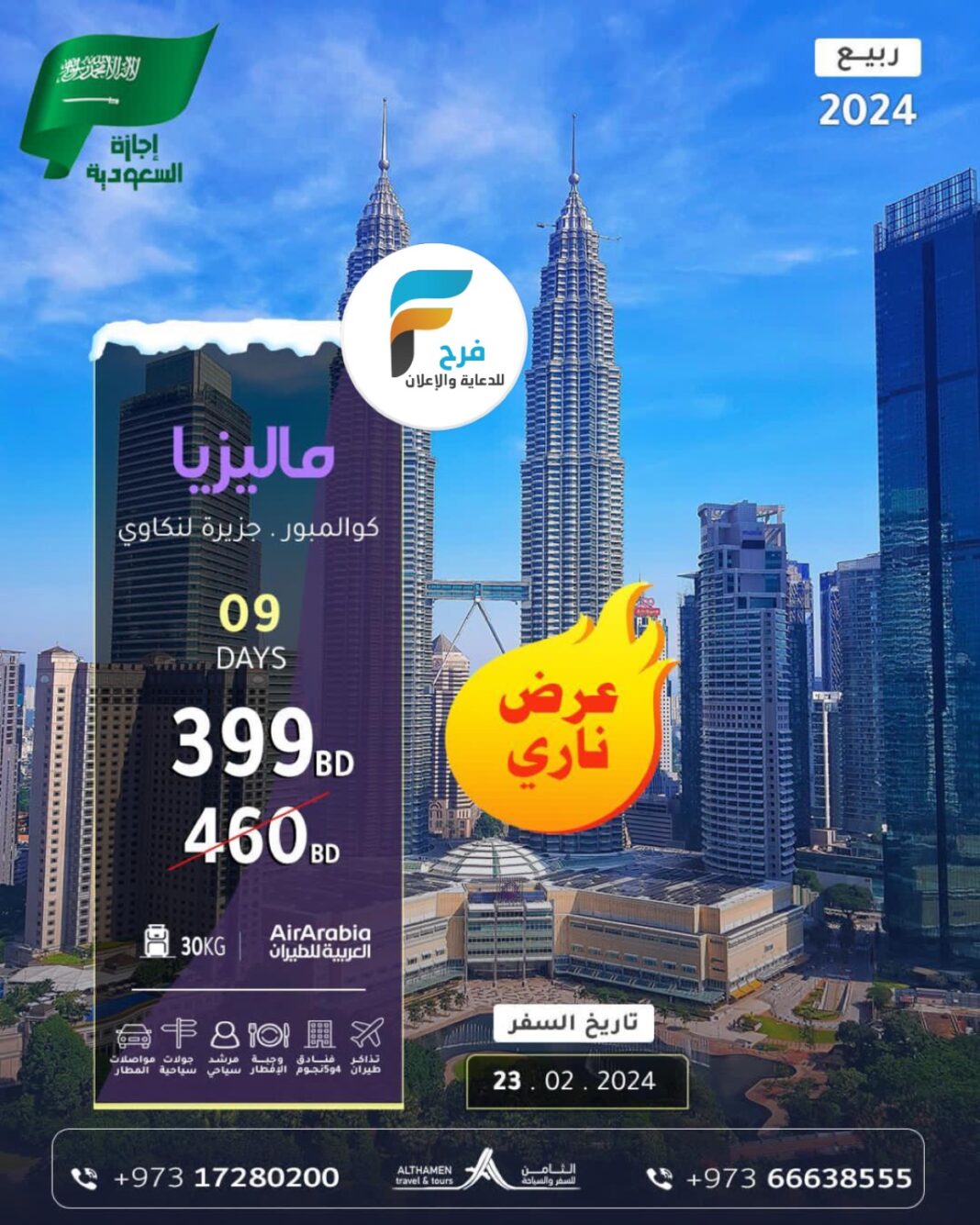 2550 ريال تبدأ رحلات الثامن للسفر والسياحة / ماليزيا – اذربيجان – تايلند – جورجيا – سريلانكا – تركيا 15 فبراير، 2024 1 للحجز والاستفسار : 0097366638555 0097317280200 أشترك معنا في خدمة فرح : Enter the text or HTML code here شارك هذا الموضوع: النقر للمشاركة على X (فتح في نافذة جديدة) X انقر للمشاركة على فيسبوك (فتح في نافذة جديدة) فيس بوك معجب بهذه:إعجاب تحميل... مرتبط