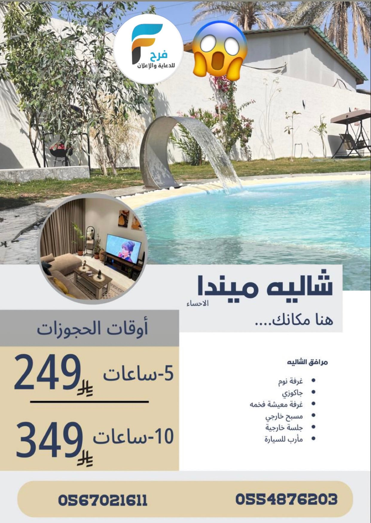 199 ريال تبدأ عروض شالية ميندا للإيجار اليومي 21 مارس، 20261للحجز والإستفسار :-05670216110554876203الانستقرام:-www.instagram.comتيك توك:-www.tiktok.comسناب شات:-www.snapchat.comالموقع :-www.googlemap.comأشترك معنا في خدمة فرح :