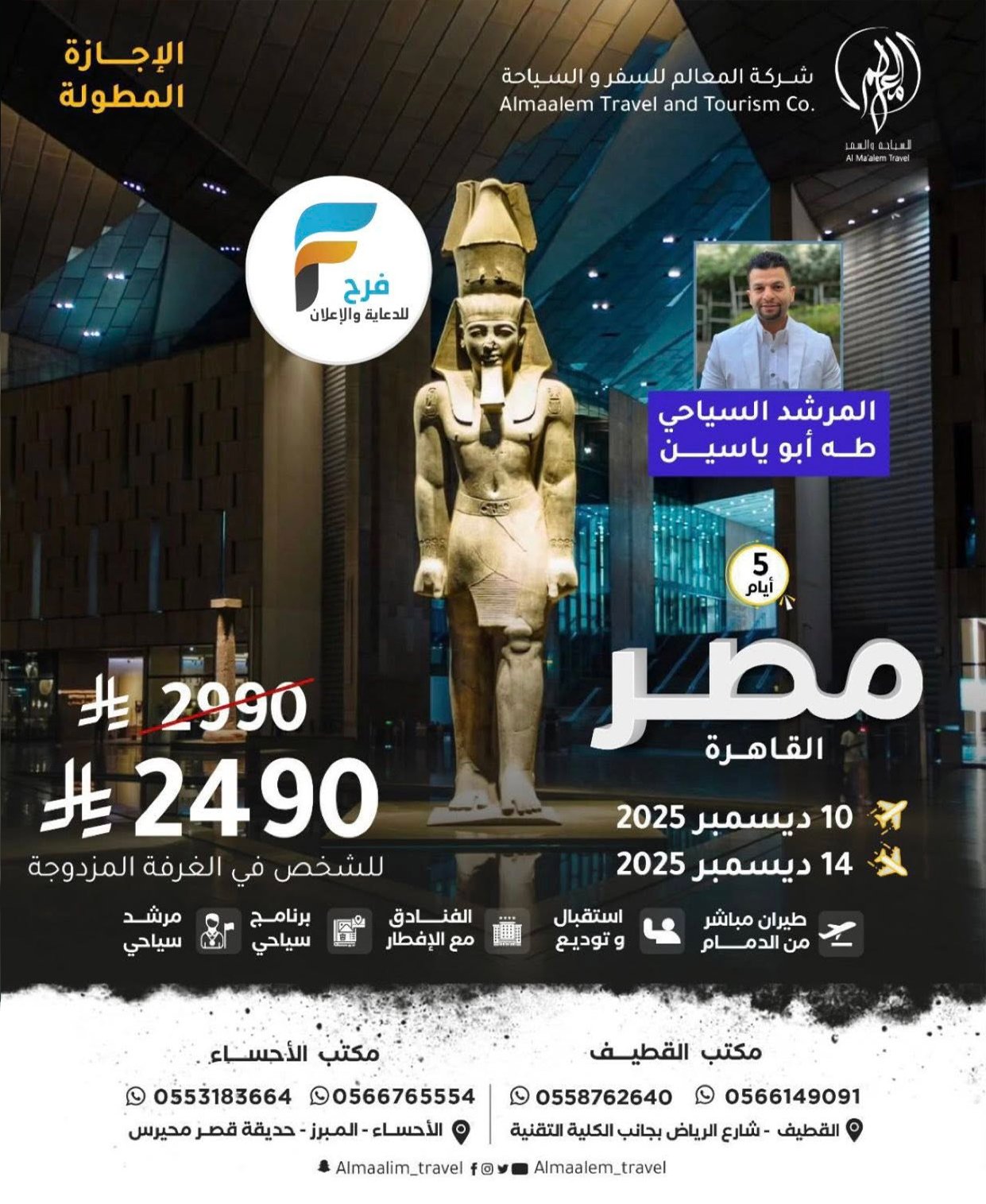 خصومات وعروض رحلات شركة المعالم للسفر والسياحة الإجازة المطولة / مصر – تركيا 2 ديسمبر، 2025 لم 4 للحجز أو الاستفسار : مكتب القطيف: 0566149091 0566148151 0558762640 0503865143 0503806133 0554380342 0564638766 0594267042 0538263916 مكتب الاحساء: 0553183664 0566765554 الانستقرام : https://www.instagram.com/ أشترك معنا في خدمة فرح : شارك هذا الموضوع: النقر للمشاركة على X (فتح في نافذة جديدة) X انقر للمشاركة على فيسبوك (فتح في نافذة جديدة) فيس بوك معجب بهذه:إعجاب تحميل... مرتبط