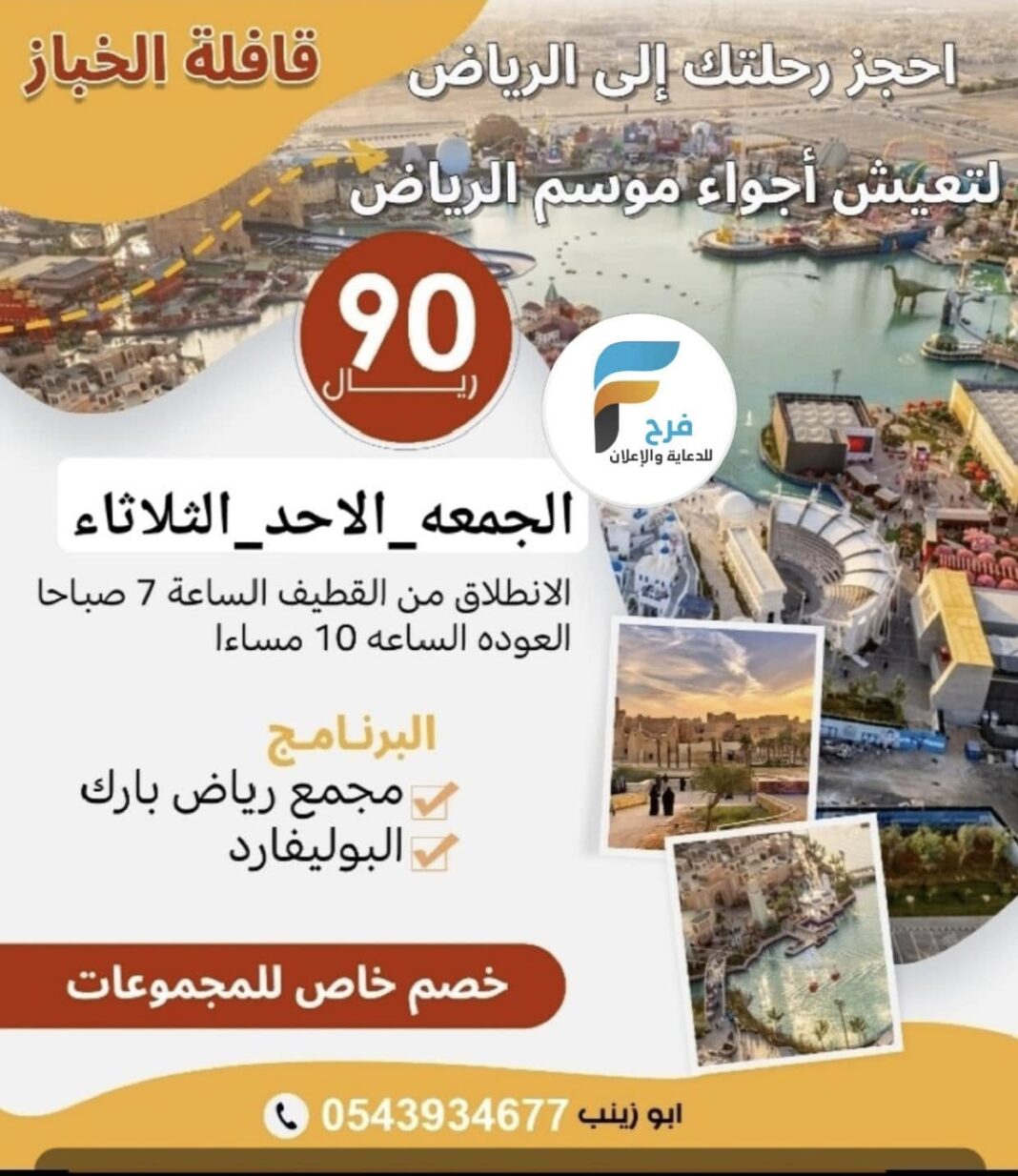 90 ريال تبدأ رحلات قافلة الخباز – يتوفر لدينا جميع انواع الشقق والغرف / الرياض – قطر – مصر 16 فبراير، 2025 1 للحجز و الاستفسار : ابو زينب:0543934677 أشترك معنا في خدمة فرح : Enter the text or HTML code here شارك هذا الموضوع: النقر للمشاركة على X (فتح في نافذة جديدة) X انقر للمشاركة على فيسبوك (فتح في نافذة جديدة) فيس بوك معجب بهذه:إعجاب تحميل... مرتبط