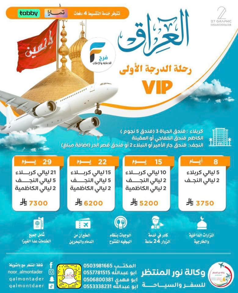 2600 ريال تبدأ رحلات قافلة المنتظر عج / العراق 19 يناير، 20261للحجز والاستفسار تواصل مع مكتب الحجوزات بالشويكةالقطيف – شارع الرياض مقابل مطعم الحسين في الشارع الثانيولتصلك عروضنا احفظ الرقم وأرسل كلمة اشتراكوتساب 0557781515للحجز والاستفسار :المكتب0138522277الجوال0557781515050398166505533382310506800381زورو صفحتنا ع الفيس بوكFacebook:http://goo.gl/MWwgEWInstgram:http://goo.gl/EaUD7Mأضفني على Snapchat! المستخدم: qalmontaderhttps://www.snapchat.comأشترك معنا في خدمة فرح :