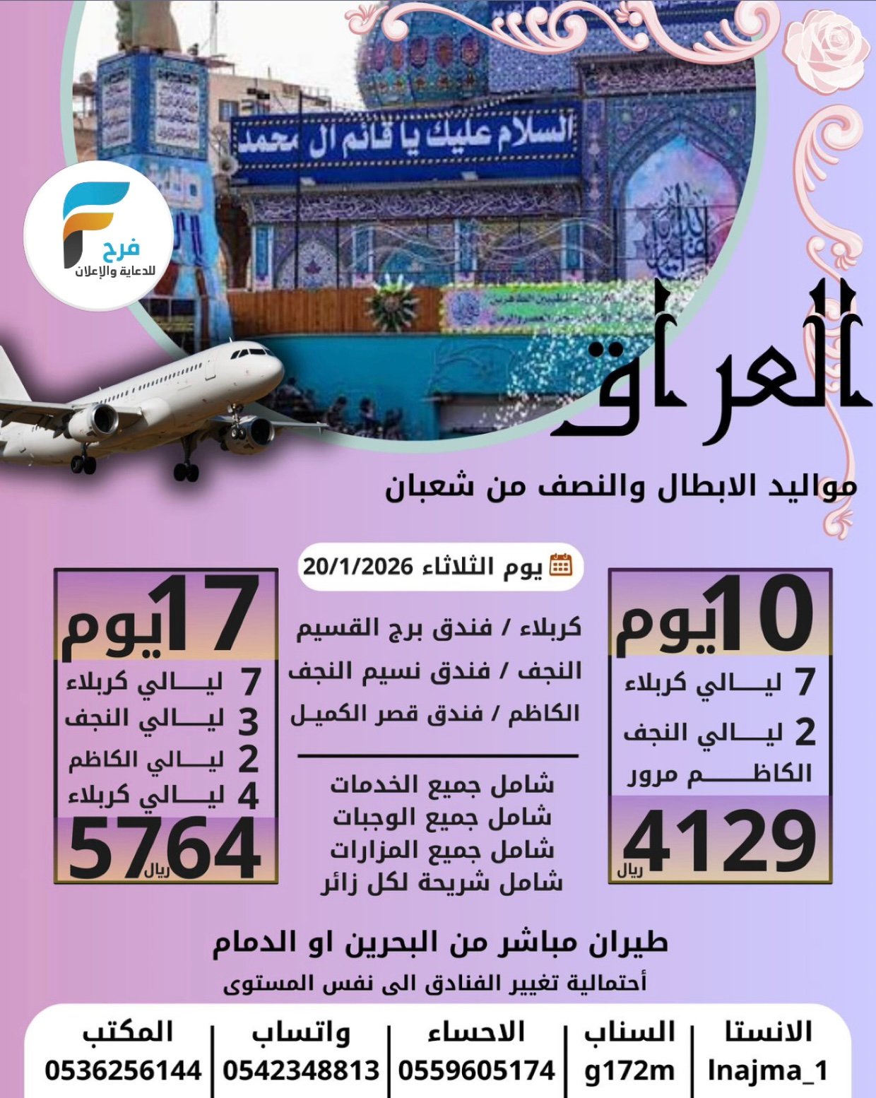79 ريال تبدأ رحلات وكالة النجمة المميزة للسفر والسياحة الأسبوعية / الاحساء – البحرين – العراق 13 يناير، 2026225/12/15للحجز والاستفسار :053625614405423488130559605174الإنستقرام :www.instagram.comسناب شات :www.snapchat.comأشترك معنا في خدمة فرح :