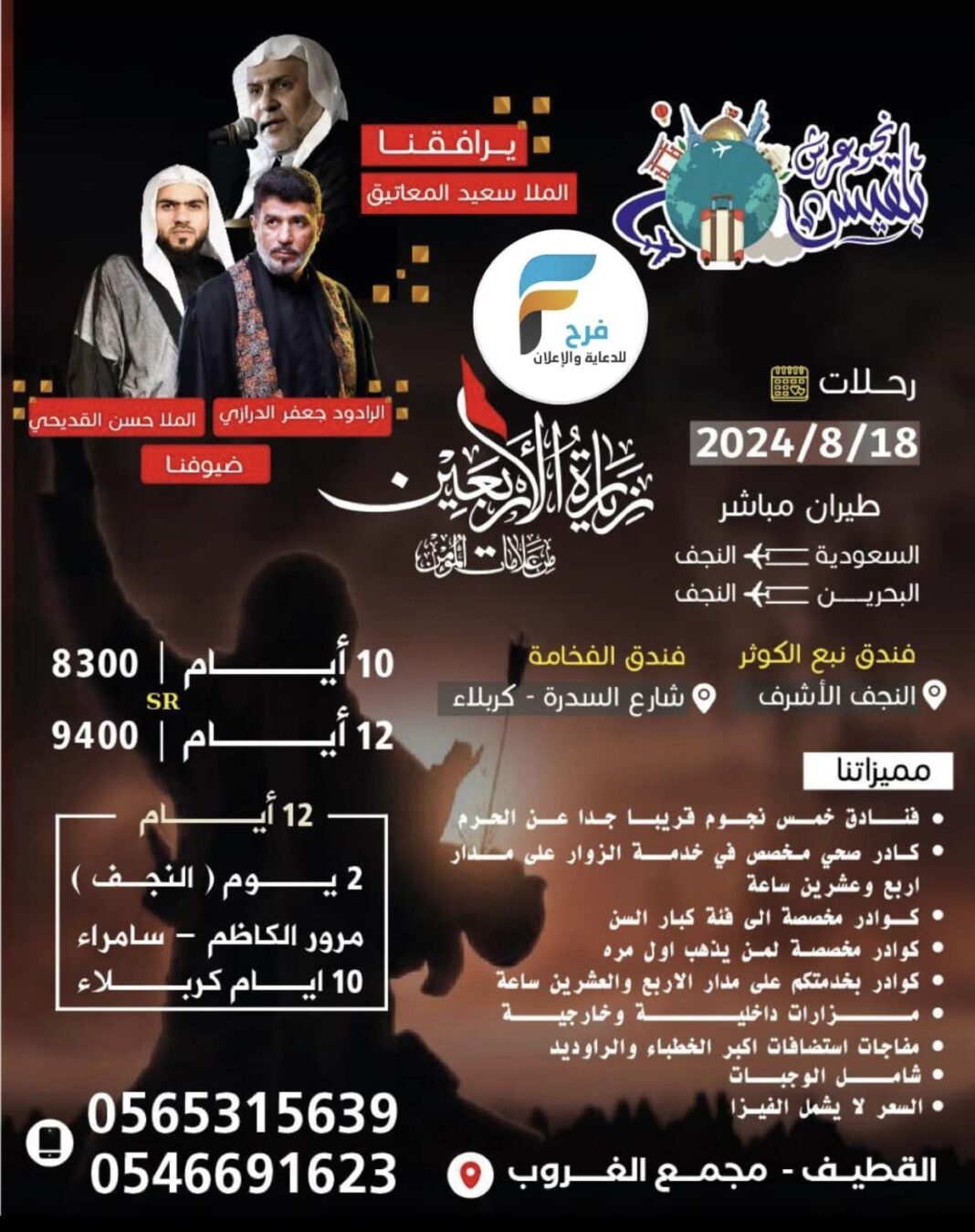 رحلات وكالة عرش بلقيس زيارة الاربعين / العراق 13 يوليو، 2024 1 للحجز والإستفسار: 0565315639 0546691623 الانستقرام: https://www.instagram.com أشترك معنا في خدمة فرح : Enter the text or HTML code here شارك هذا الموضوع: النقر للمشاركة على X (فتح في نافذة جديدة) X انقر للمشاركة على فيسبوك (فتح في نافذة جديدة) فيس بوك معجب بهذه:إعجاب تحميل... مرتبط