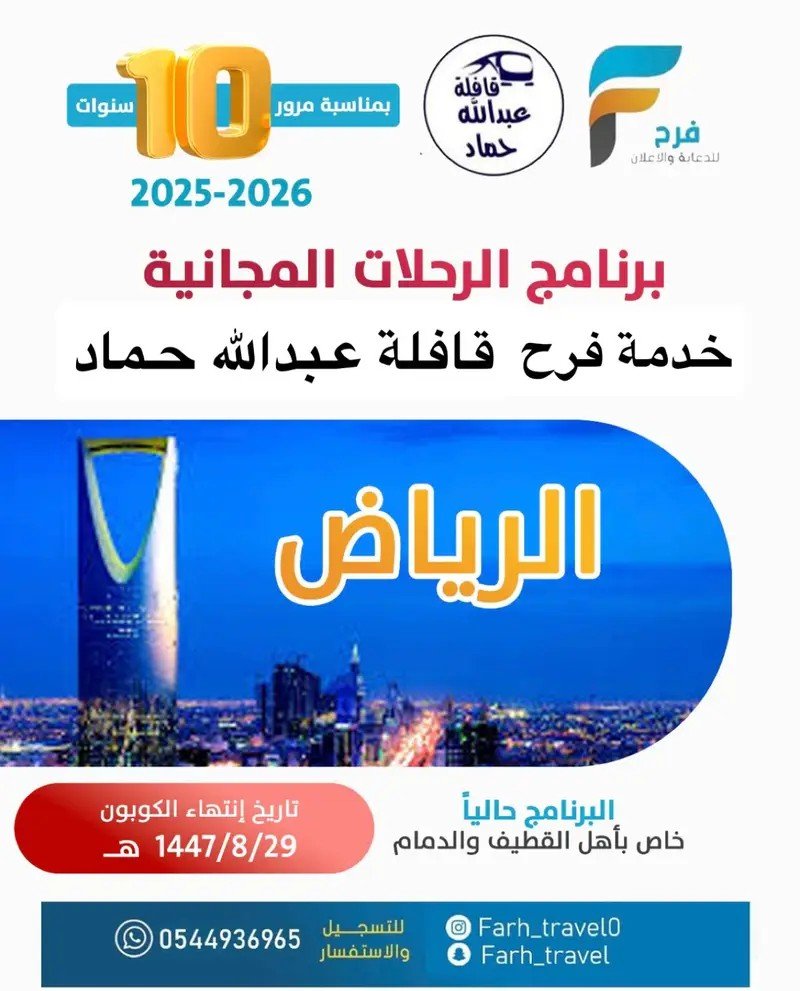 14 فائز في برنامج الرحلات المجانية بمناسبة مرور سـ10ـنوات على خدمة فرح وقافلة عبدالله حماد