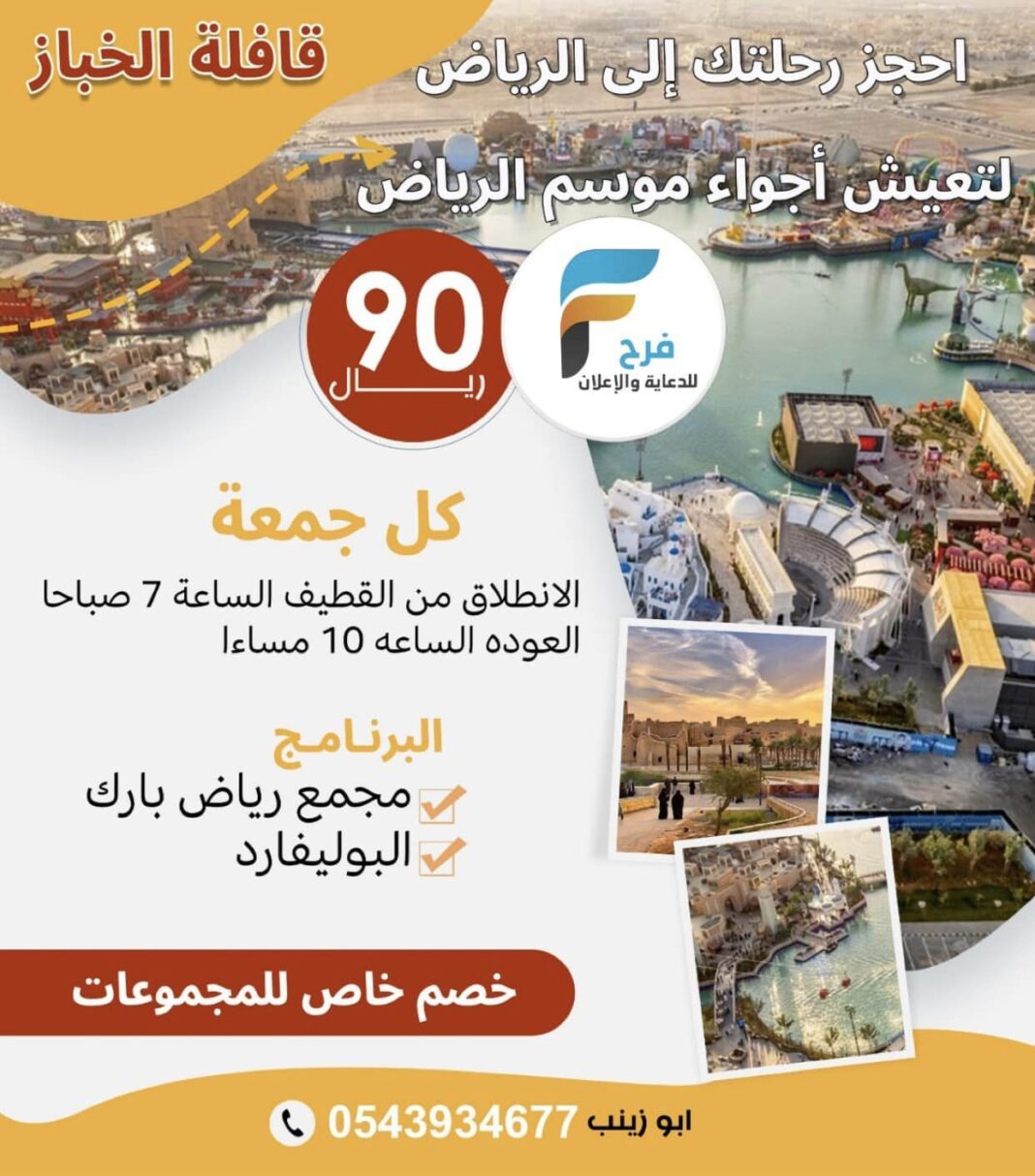 90 ريال تبدأ رحلات قافلة الخباز / الرياض – العمرة الرجبية 24 ديسمبر، 2024 1 للحجز و الاستفسار : ابو زينب:0543934677 أشترك معنا في خدمة فرح : Enter the text or HTML code here شارك هذا الموضوع: النقر للمشاركة على X (فتح في نافذة جديدة) X انقر للمشاركة على فيسبوك (فتح في نافذة جديدة) فيس بوك معجب بهذه:إعجاب تحميل... مرتبط
