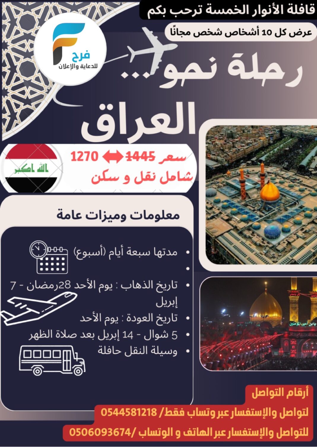 رحلة قافلة الانوار الخمسة / العراق 20 مارس، 2024 2 قافلة الانوار الخمسة للحجز و الاستفسار : 0506093674 0544581218 رابط قروب قافلة الأنوار الخمسة https://chat.whatsapp.com أشترك معنا في خدمة فرح : Enter the text or HTML code here شارك هذا الموضوع: النقر للمشاركة على X (فتح في نافذة جديدة) X انقر للمشاركة على فيسبوك (فتح في نافذة جديدة) فيس بوك معجب بهذه:إعجاب تحميل... مرتبط