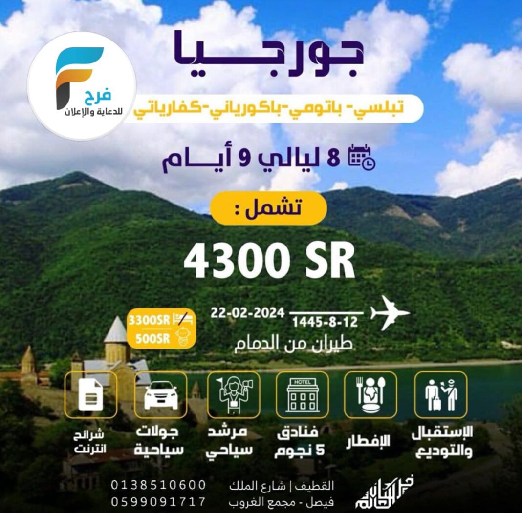 رحلات وكالة فرسان العالم / جورجيا 8 فبراير، 2024 2 للحجز أو الاستفسار : 0599091717 المكتب :- 0138510600 مندوب الاحساء :- 0507942287 أشترك معنا في خدمة فرح : Enter the text or HTML code here شارك هذا الموضوع: النقر للمشاركة على X (فتح في نافذة جديدة) X انقر للمشاركة على فيسبوك (فتح في نافذة جديدة) فيس بوك معجب بهذه:إعجاب تحميل... مرتبط