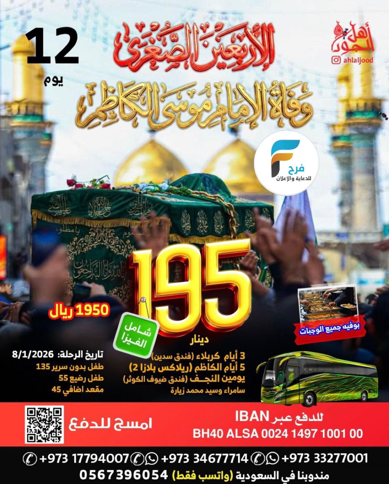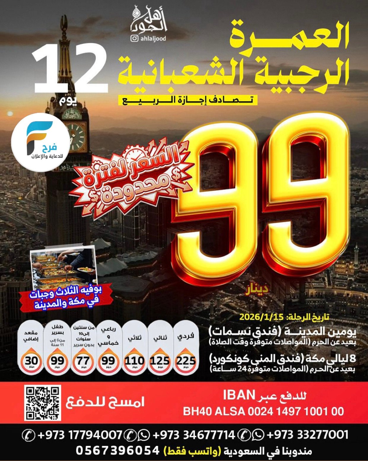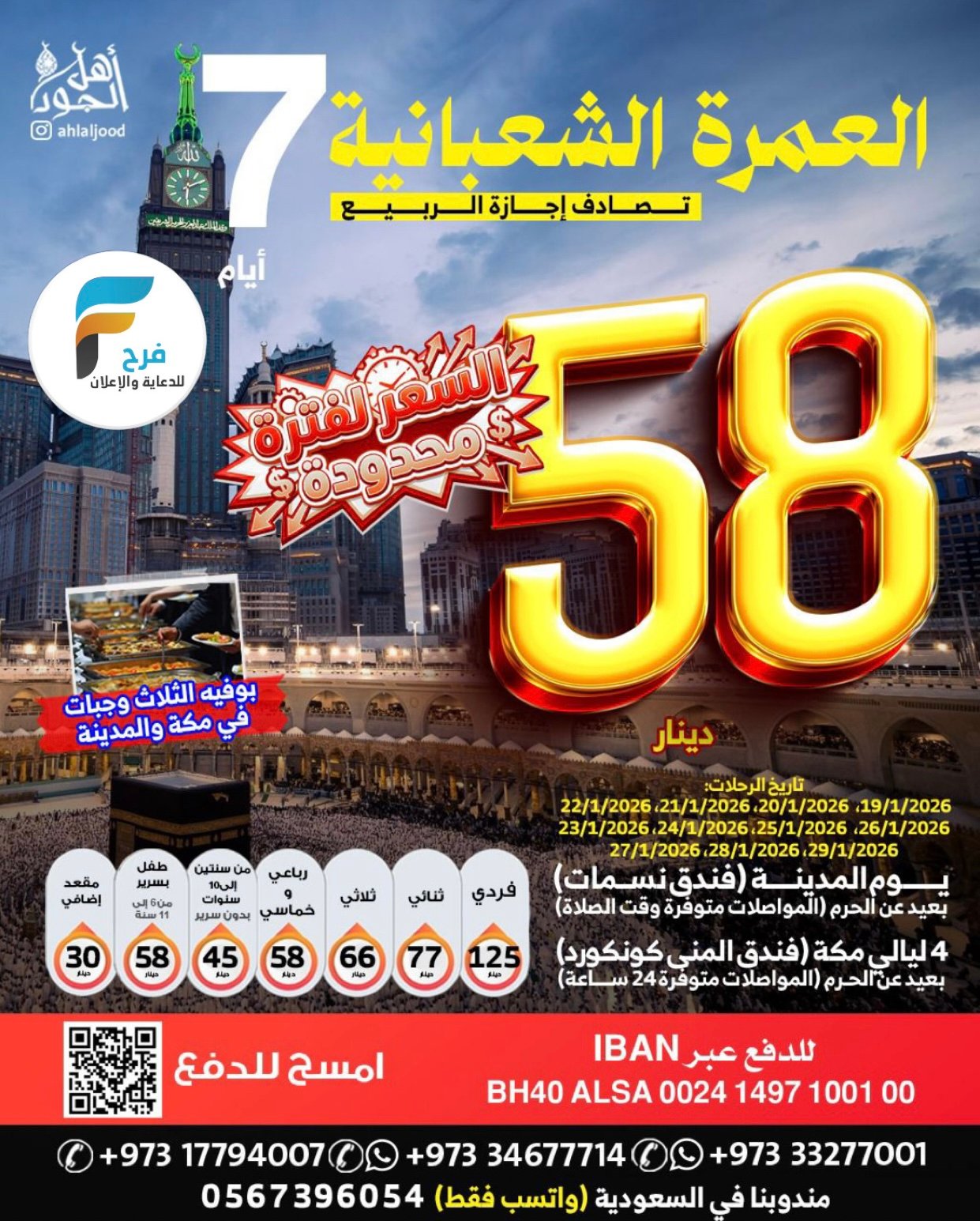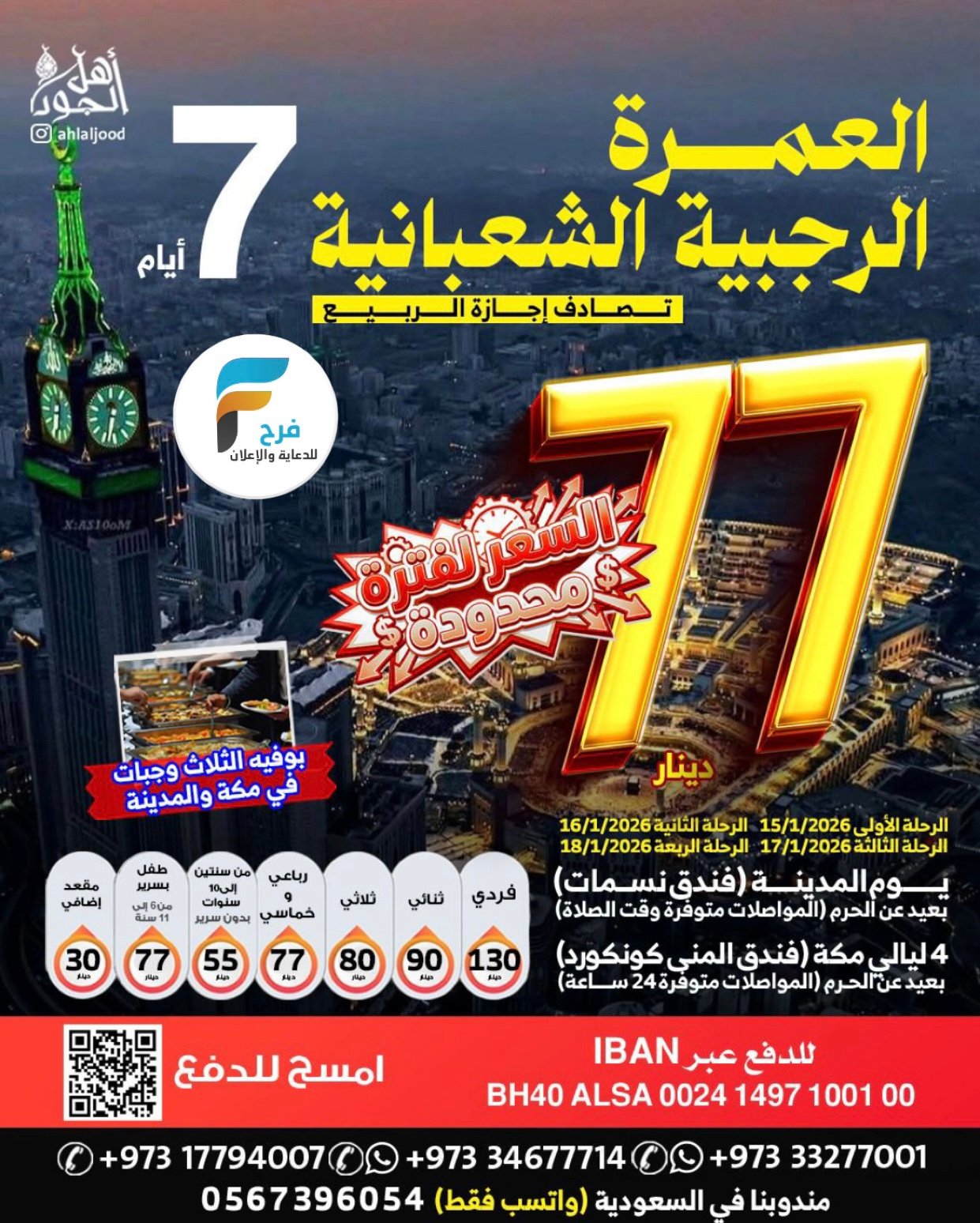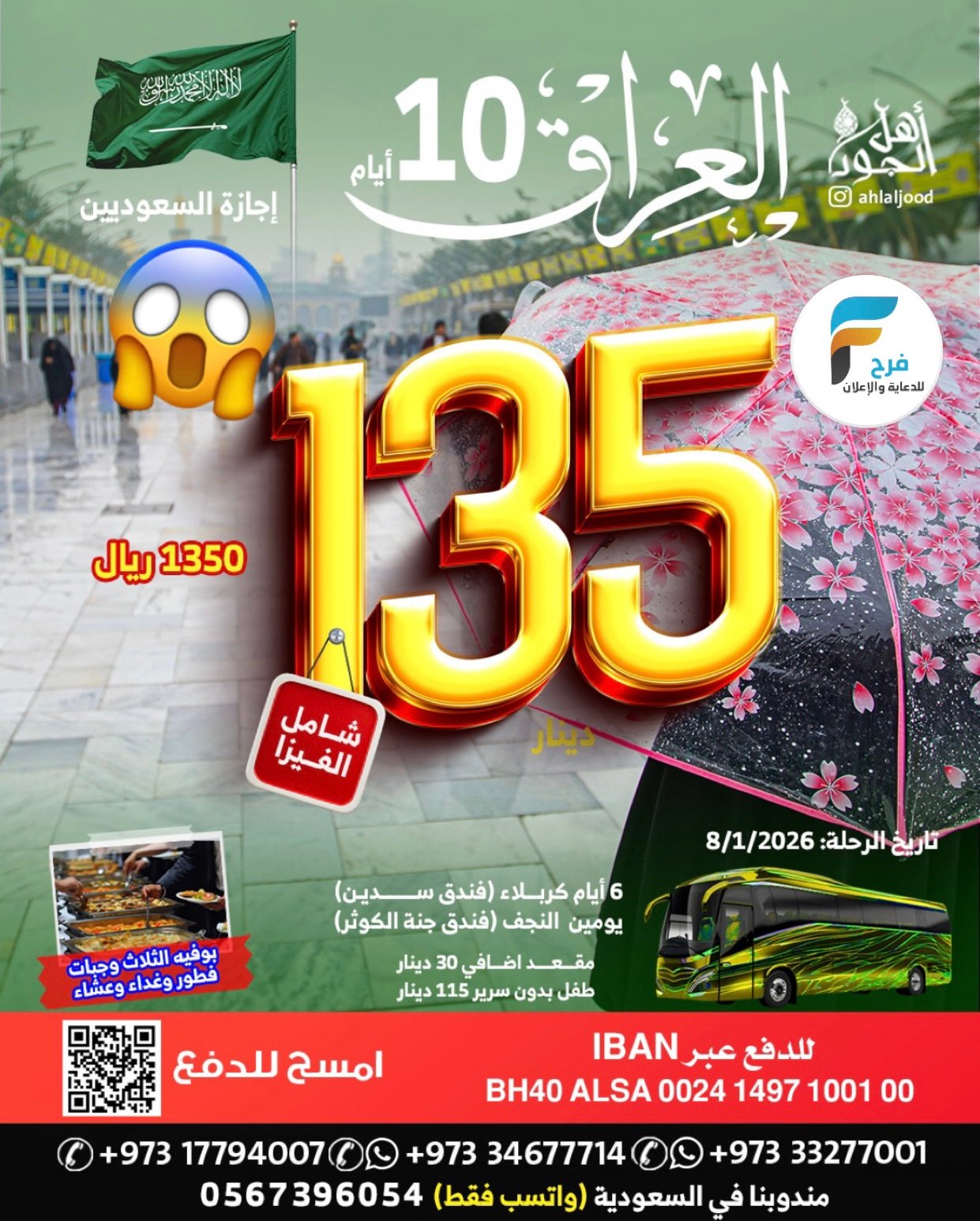 580 ريال تبدأ رحلات اهل الجود الأسبوعية / العراق _ العمرة الرجبية والمدنية المنورة 4 يناير، 20261للحجز و الاستفسار :مندوبنا في السعودية 05673960540097333277714009733327700100973177940070097334677714 : الانستقرامhttps://www.instagram.com/أشترك معنا في خدمة فرح :